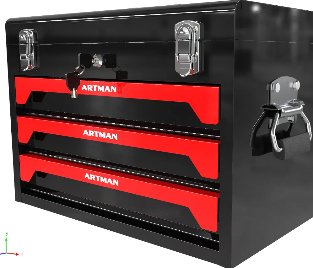 There are 3 drawers in the metal tool cabinet.