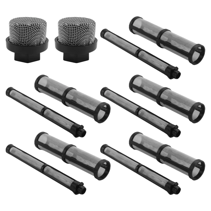Straw filter and pump core filter are compatible with Graco 390 395 490 495 595 3400 sprayers and gun filter screens are compatible with Graco spray guns