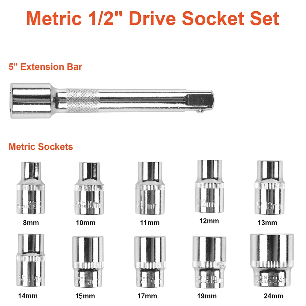 • 8-24mm Range :With a range of 8-24mm, these ratchet sockets can accommodate a variety of nuts and bolts, making them a practical choice for various repair tasks.