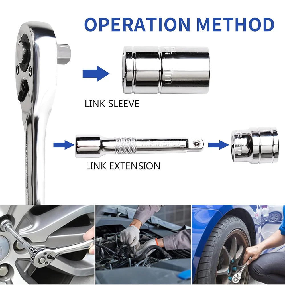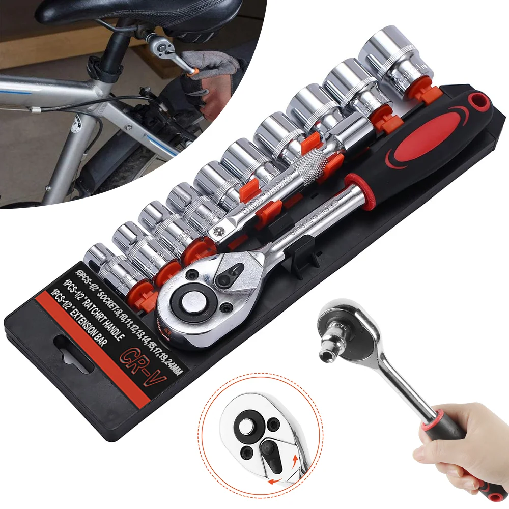 12Pcs 1/2" Ratchet Socket Wrench Set Multi-function Ratchet Spanner Set Quick Release Reversible Ratchet Tool with Extension Rod