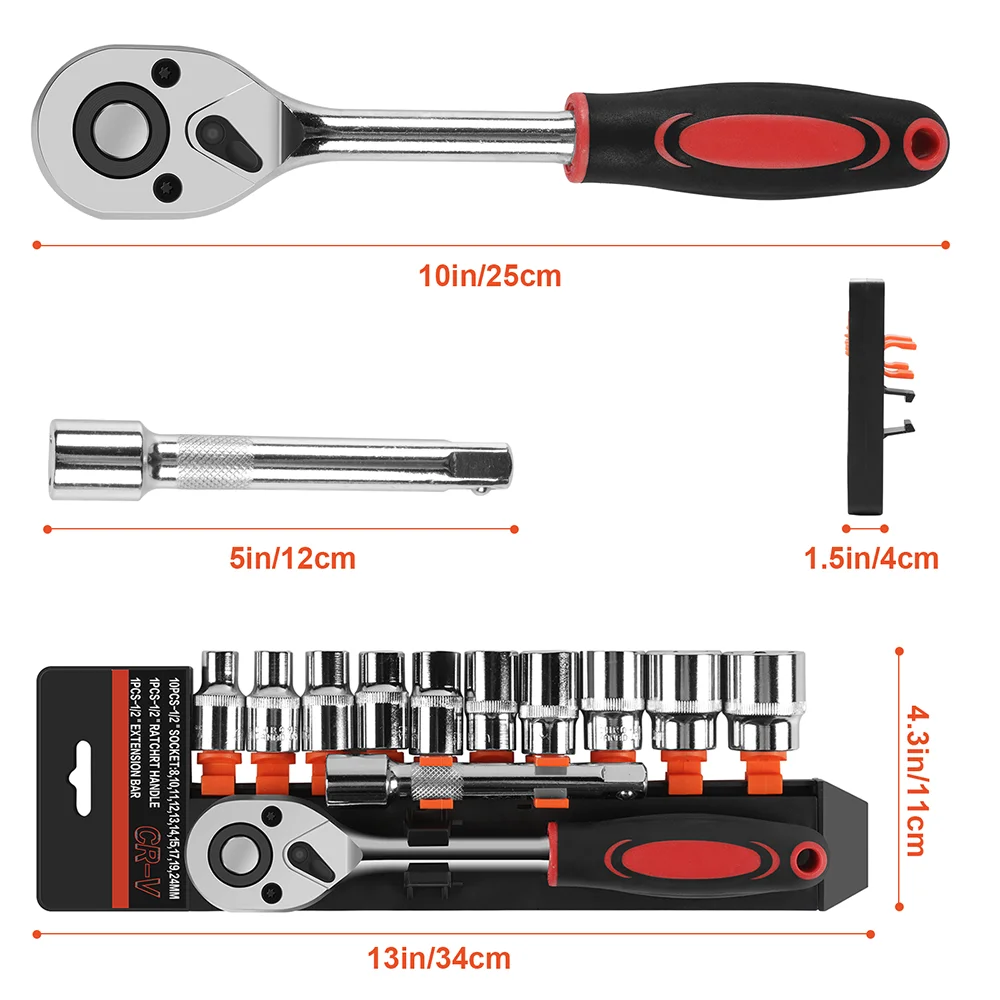 • Multi-Function Ratchet Socket Wrench Set :This 12-piece set is a versatile tool, perfect for repairing cars, boats, and other automotive vehicles. Its multi-function design makes it a must-have for every toolbox.