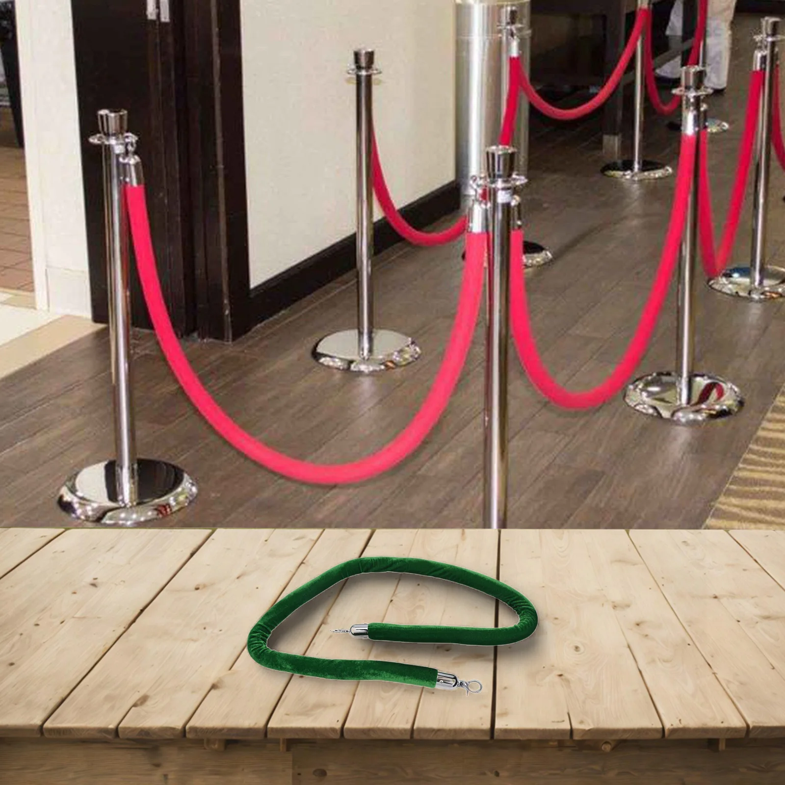 This burgundy velvet crowd control rope is  and elegant. At 5 feet long, it makes a perfect span when suspended between two stanchions (not included) and allowed to hang. The main body of the rope is constructed from a compression-resistant foam core and covered with red velvet. Each end of the rope has a heavy duty hook with a self-closing buckle. This rope barrier is 60 inches in total length and 1.5 inches in diameter. Please note that the product does not include struts or poles. It's just the crowd control rope.