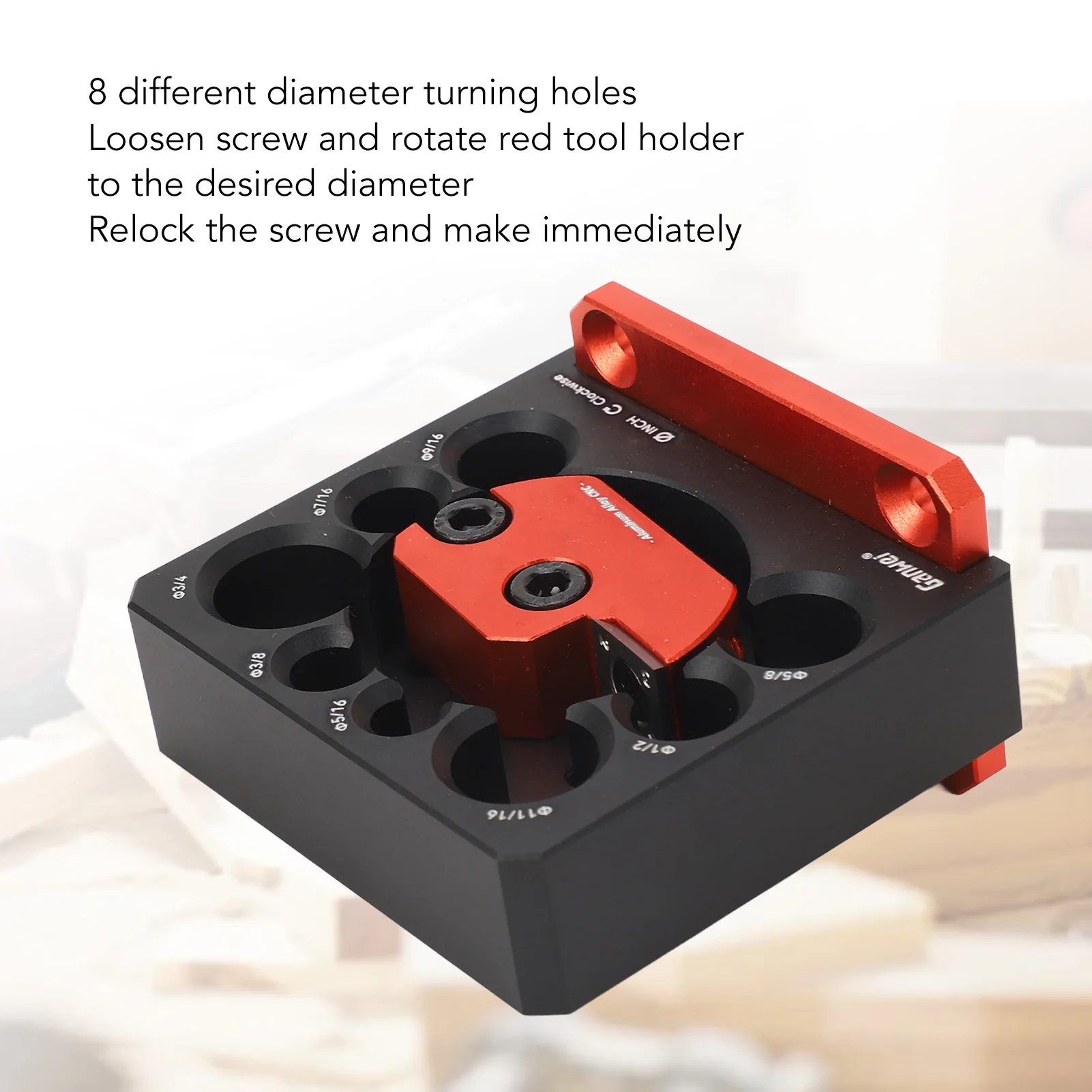 3. EASY TO OPERATE: Adjustable dowel maker jig come with 8 different diameter turning holes, loosen the screw and rotate the red tool holder to the desired diameter, relock the screw and make immediately