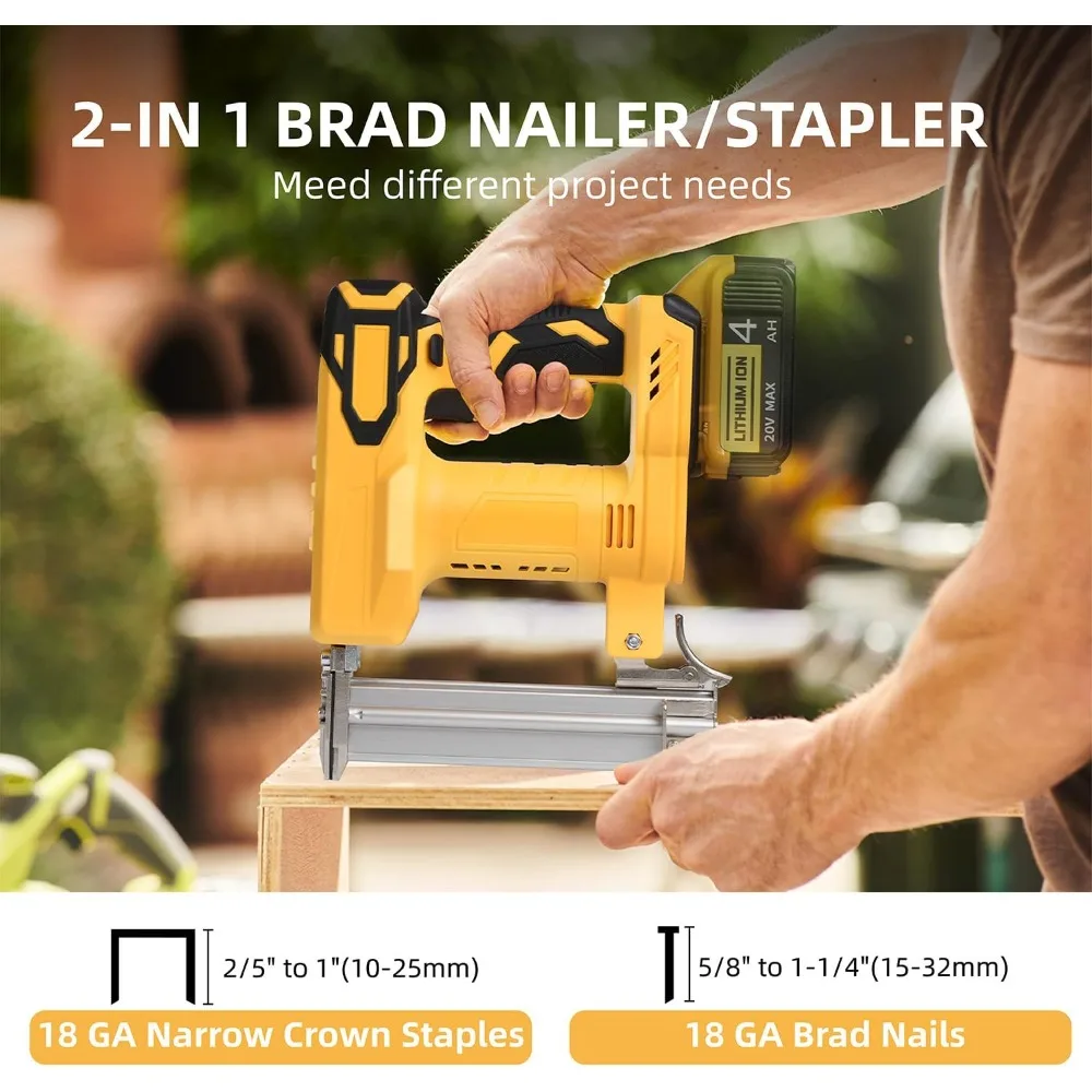 18 Gauge Brad Nailer/Narrow Crown Stapler Compatible with Dewalt 20V MAX Battery(NO Battery) 2 in 1 Cordless Nail Gun with 1000
