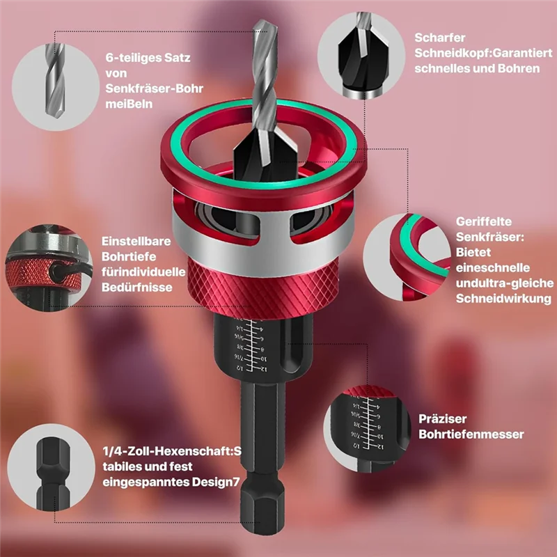 Wide Application Range: Ideal for natural wood, chipboard, synthetic fibreboard, plywood, and MDF, this countersink drill set offers a comprehensive solution for creating perfect countersinks. Its versatility makes it an essential tool for any woodworking project, ensuring precise results.