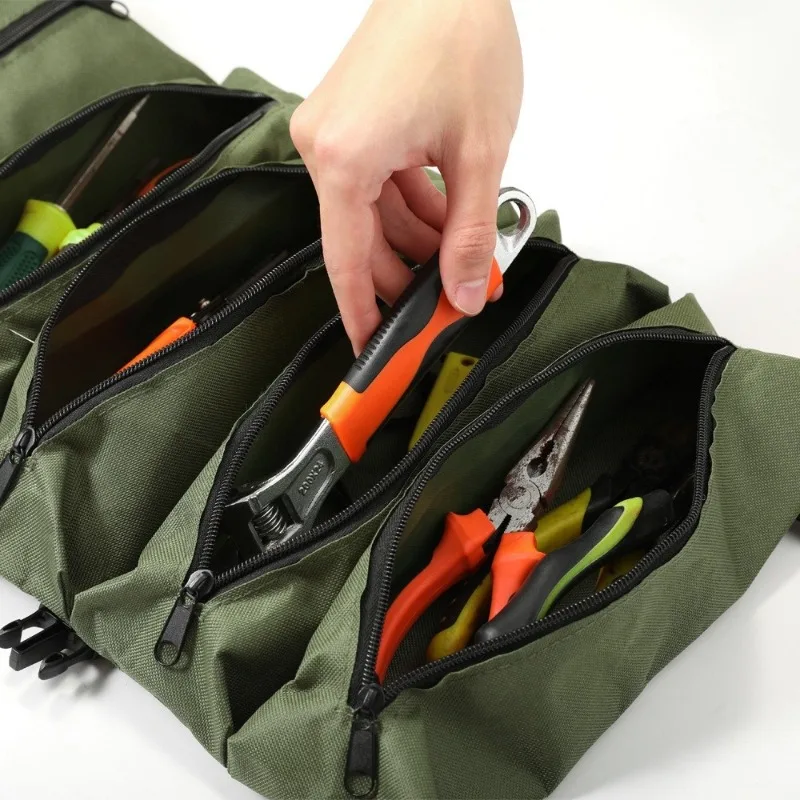 Roll-Up Mechanic's Tool Bag - Compact Multi-Pocket Organizer for Field Service & Automotive Repairs