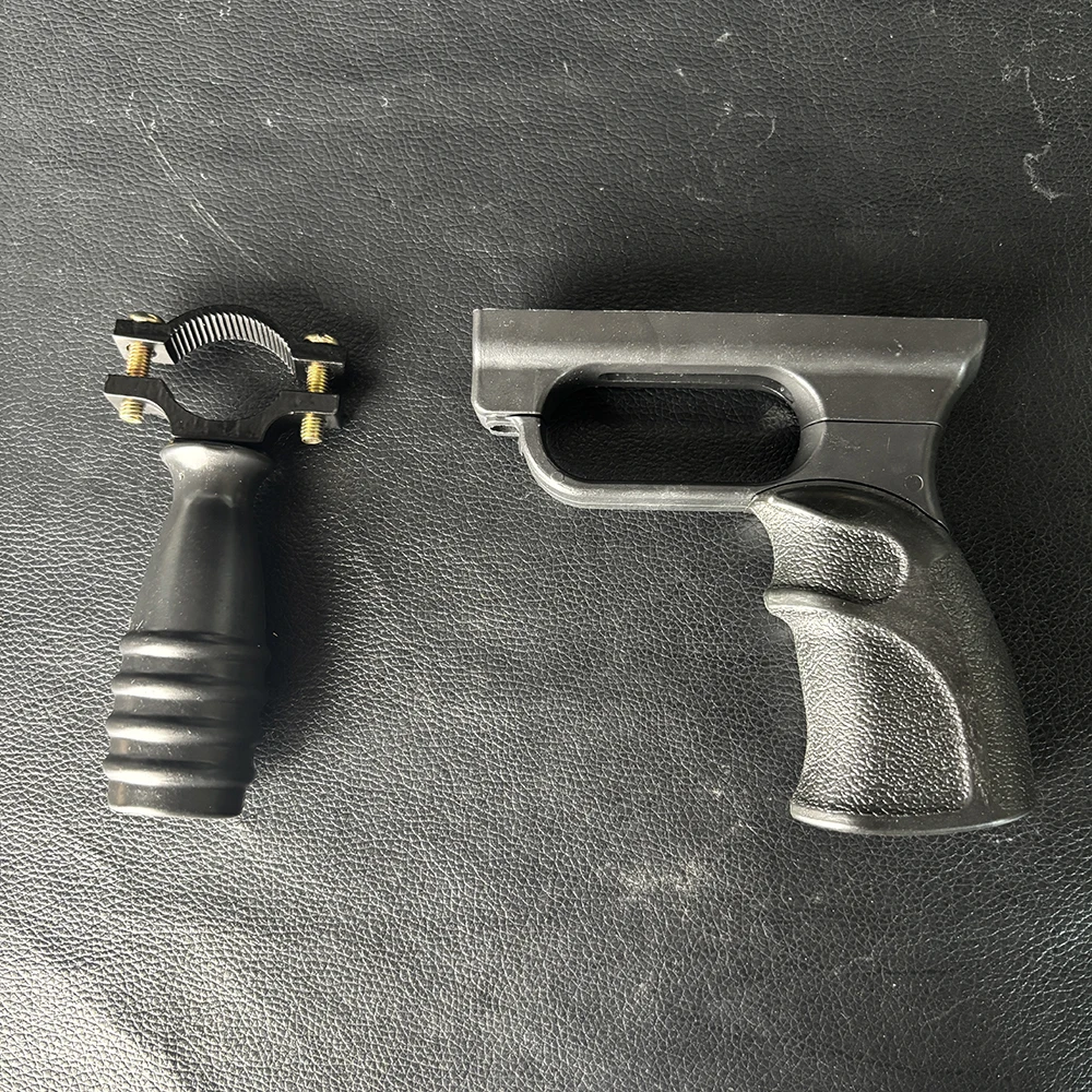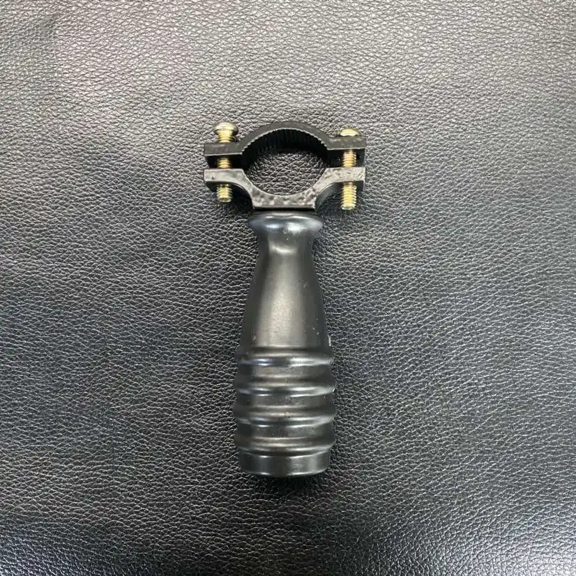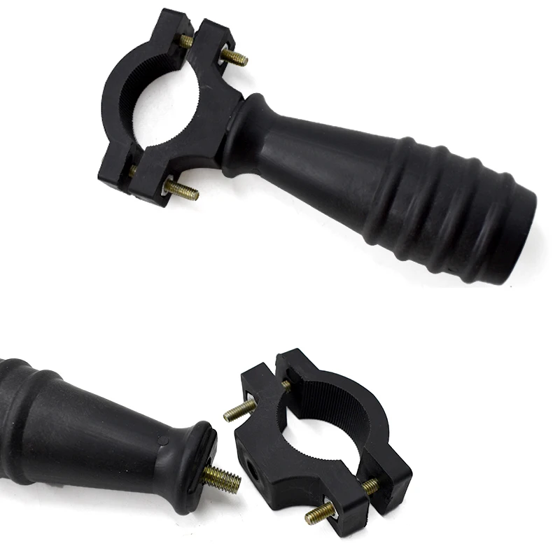 Appearance: Both are black. The handle with the threaded clamp has annular concave - convex textures at the gripping part, and a threaded clamp with golden screws at the top; the second detachable grip has a leather - like texture on the surface and a long - strip - shaped connecting part at the top.