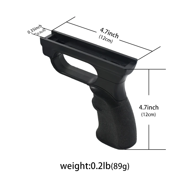 Dimensions: The one with the threaded clamp is about 9 cm long and weighs 65 g; the detachable grip is 4.7 inches (about 12 cm) long, 0.35 inches (about 0.9 cm) wide, and weighs 0.2 pounds (about 89 g).