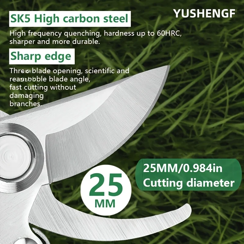 Crafted from SK5 high carbon steel, these pruners offer superior durability and sharpness for long-lasting use.
