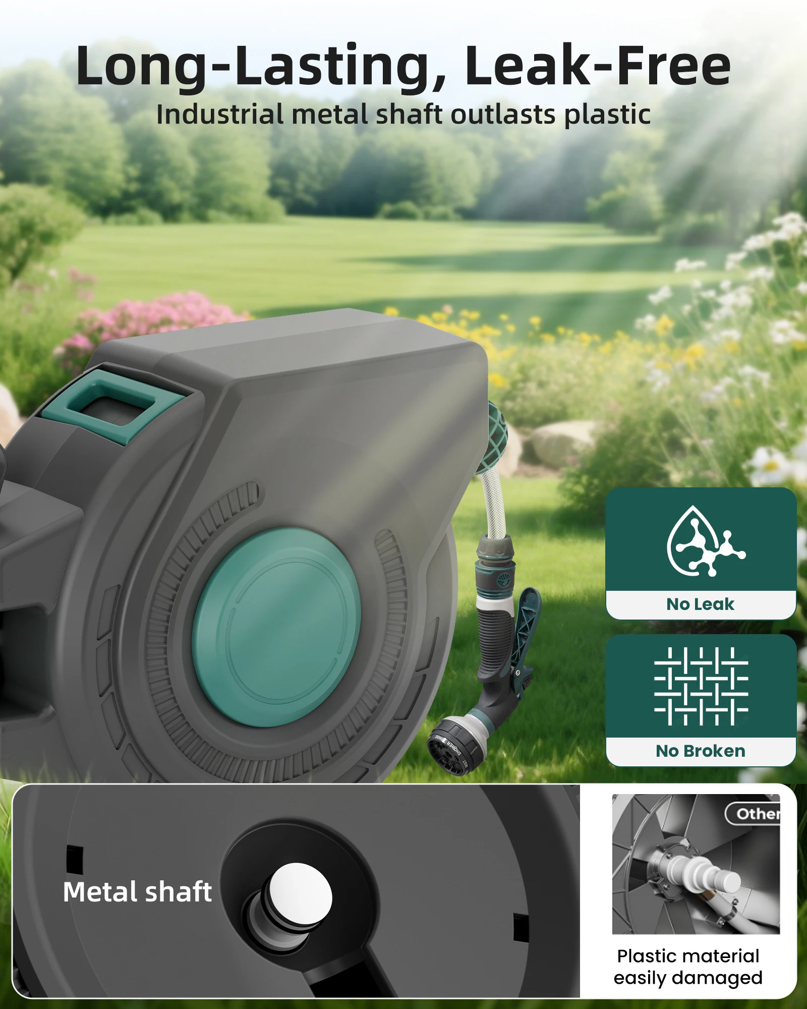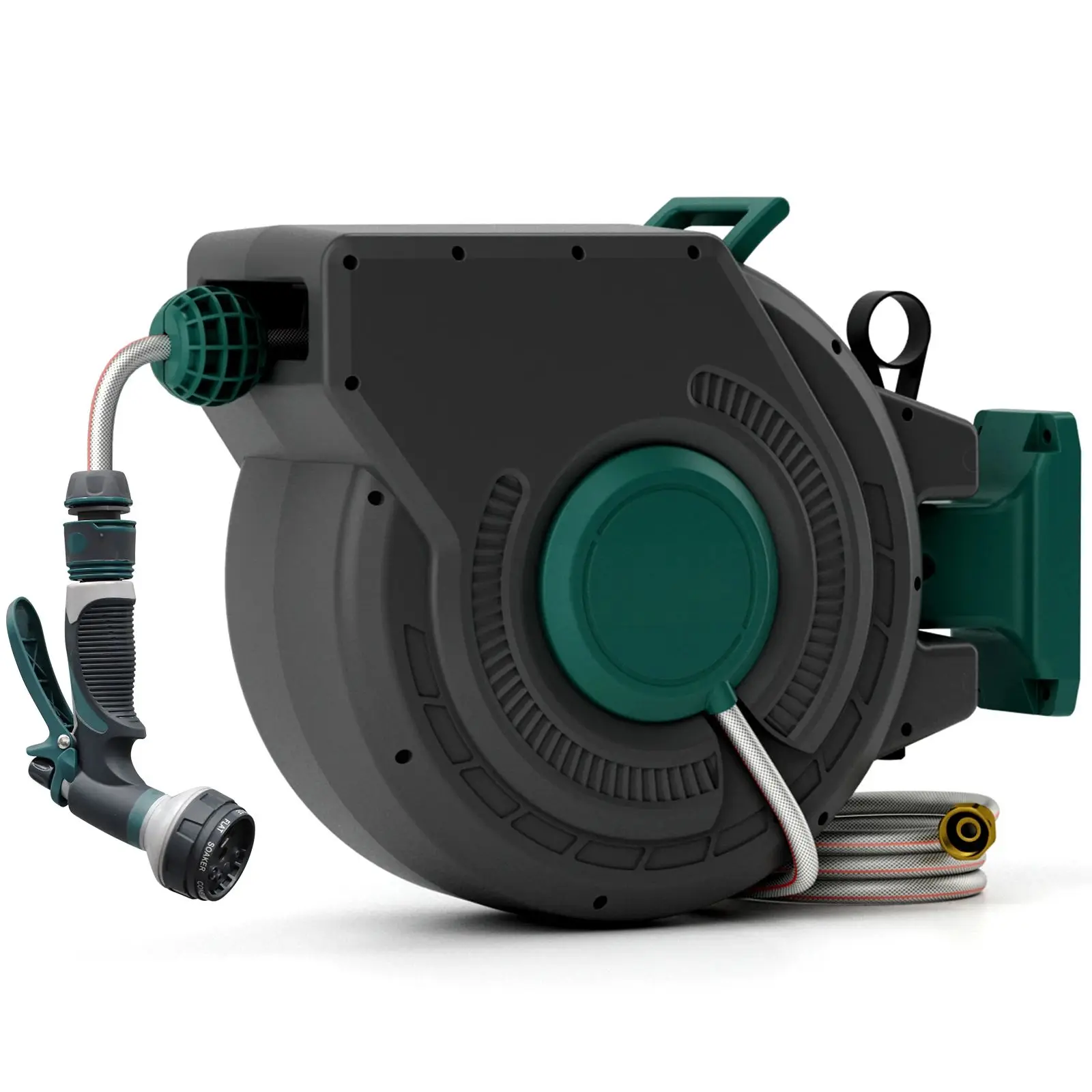Retractable Garden Hose Reel 1/2 Inch x 100 ft, Super Heavy Duty, Any Length Lock, Slow Return System, Wall Mounted and 180 Deg