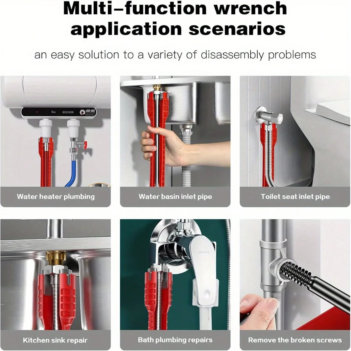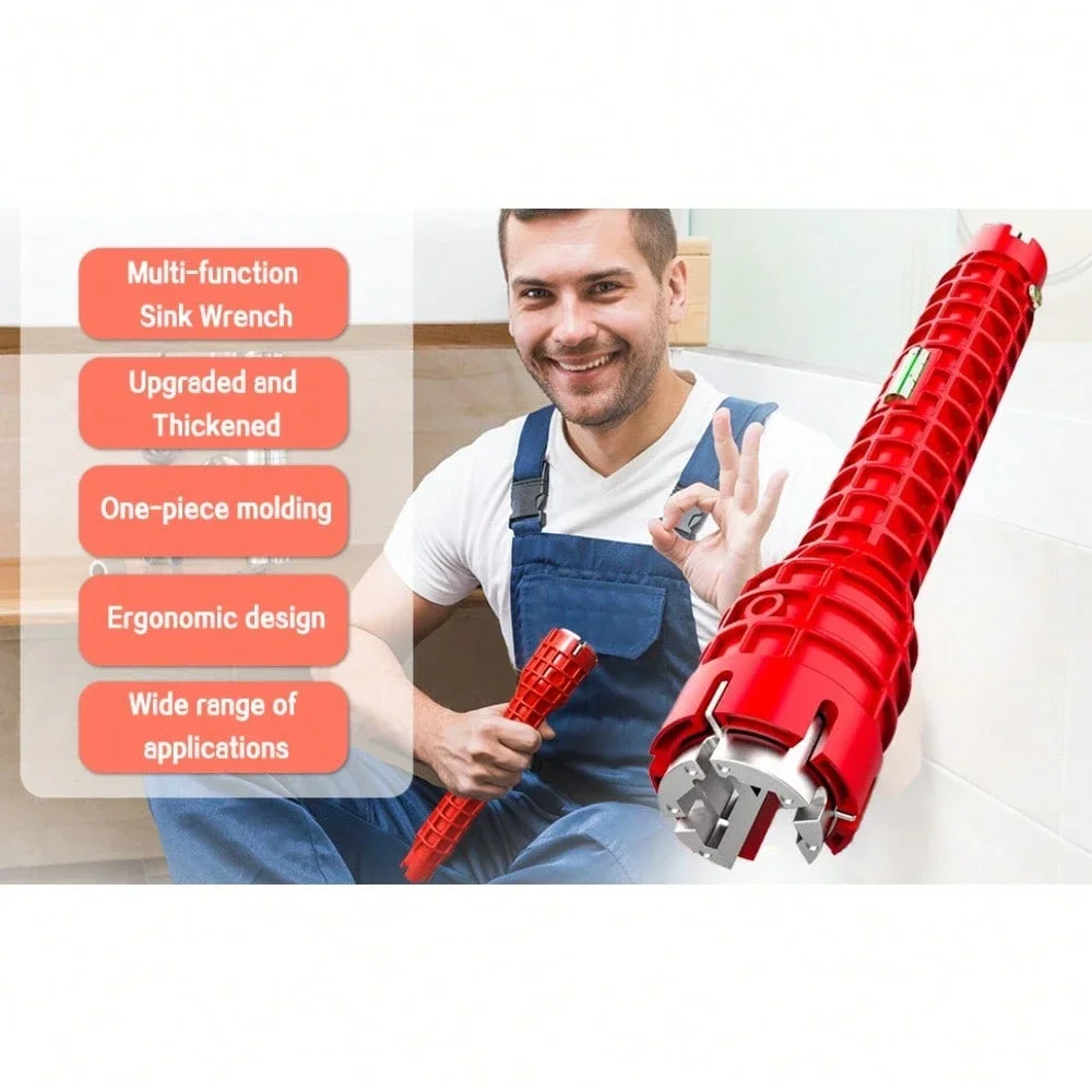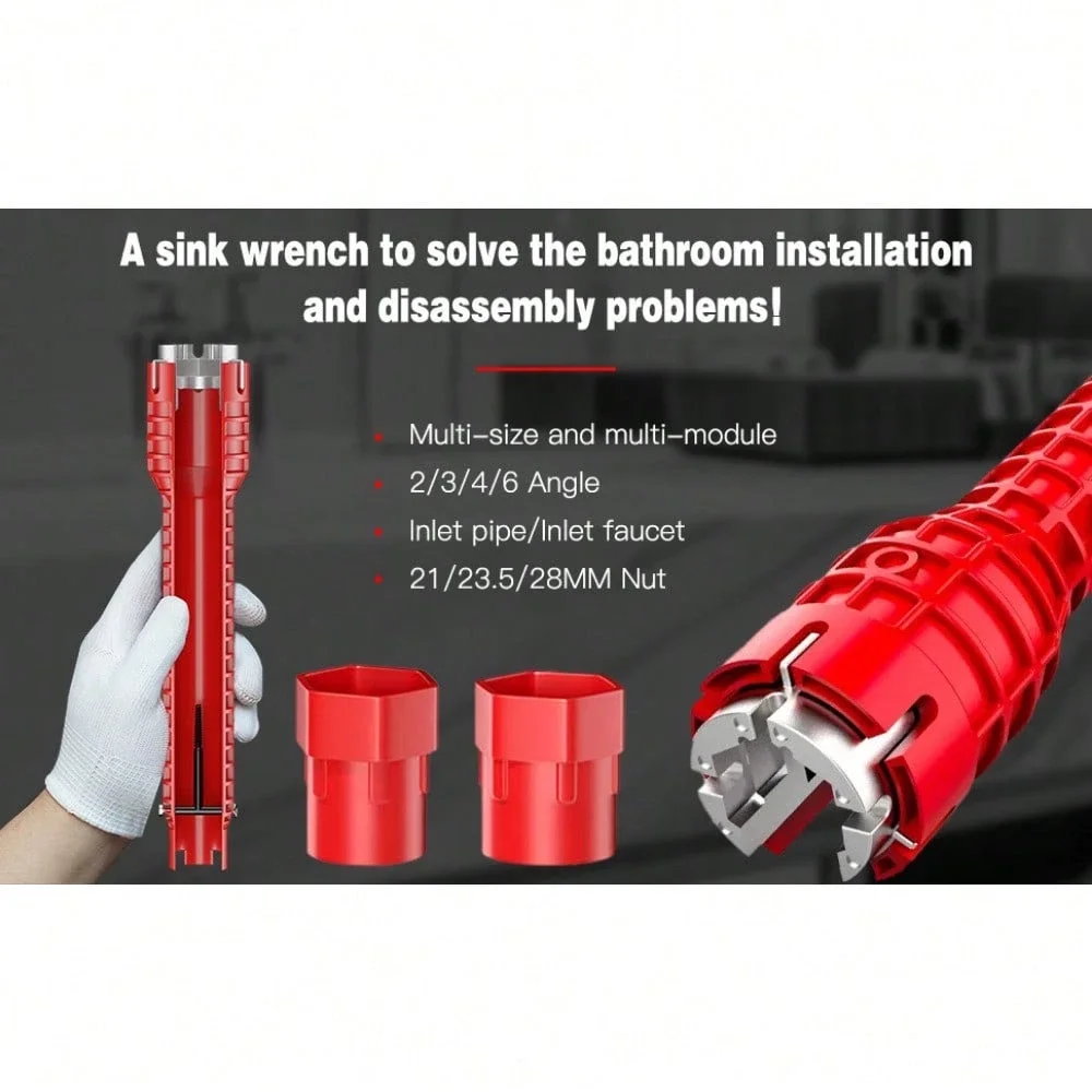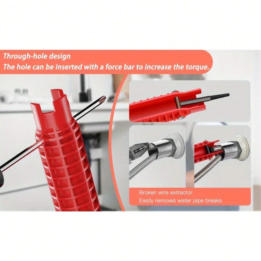 【8-in-1 Humanized Design】Upgraded version 8 in 1 multifunction sink wrench thickened material hardness, torque sufficient, moderate weight, multi-molded head design, suitable for 2/3/4/6 angle nut nut, with the nut remover to meet 95% of household sinks and other joints removal and installation. Add broken wire extractor at the end and through-hole for enhanced rotational strength.
