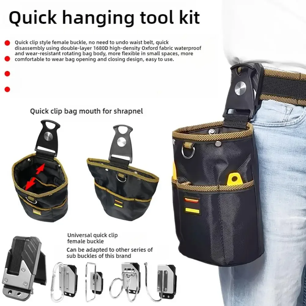 Oxford Cloth Tool Storage Bag With Buckle Rotatable Quick-hanging Waist Tool Bag For Nail Screw Electrician Woodworking Organize