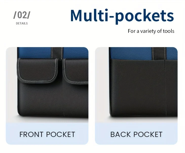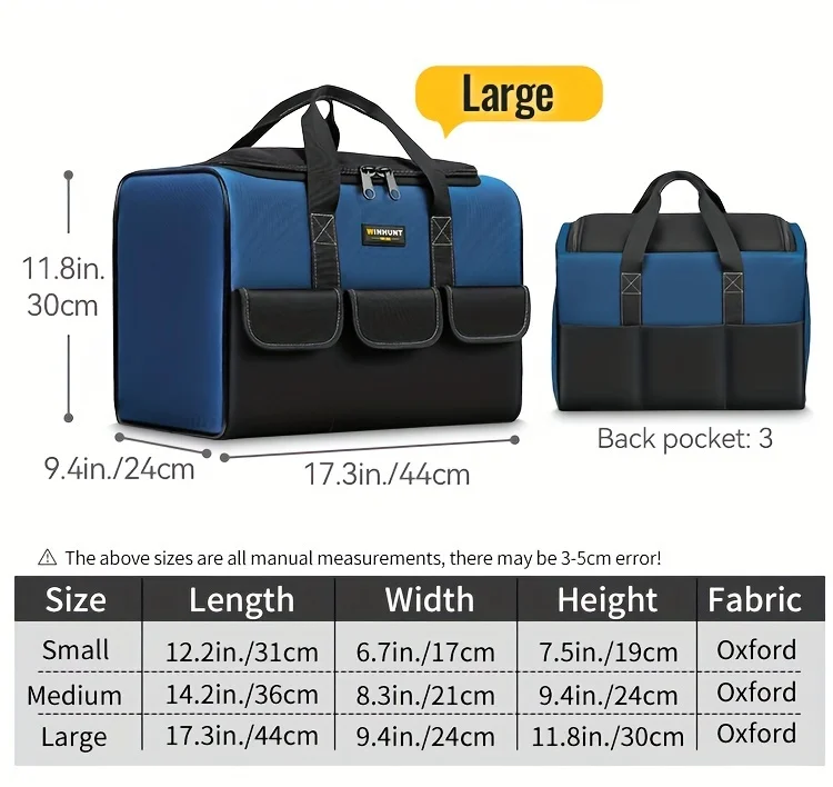 Heavy Duty Tool Bag with Wide Mouth - Durable Multi-Pocket Organizer for Men, Mixed Colors, No Assembly Required