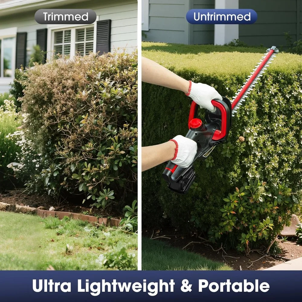 180° Rotating Handle for Versatile Precision: Cordless hedge trimmers are equipped with a 180° rotating handle, allowing smooth horizontal and vertical trimming. Hedge trimmer lightweight design reduces body and arm strain, complete the trimming work comfortably and efficiently
