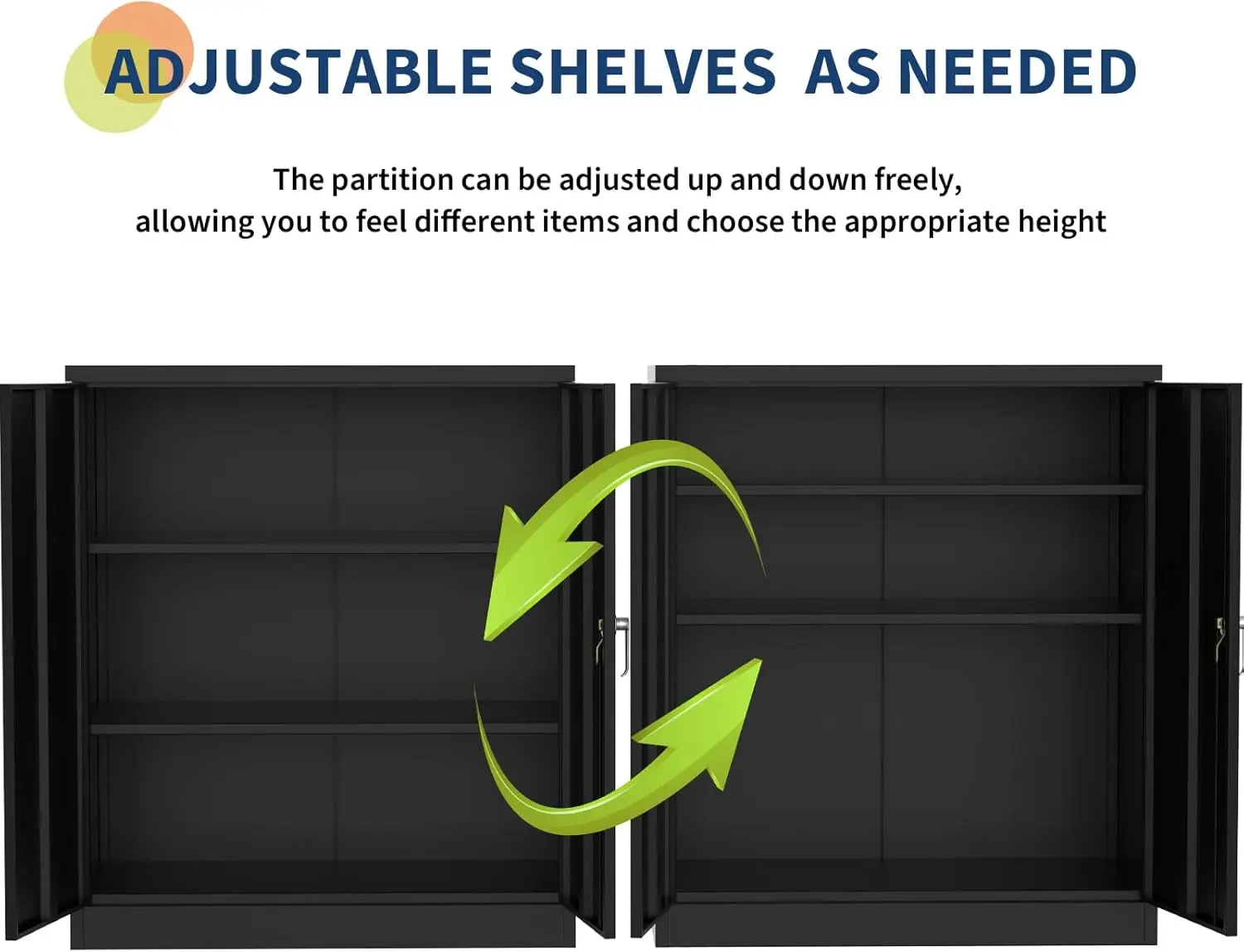 --Flexible Layout: Two adjustable shelves make it simple to customize your heavy duty steel cabinet for tall tools, office binders, or cleaning supplies. Efficiently separate and store items by height for neat, accessible organization in any space