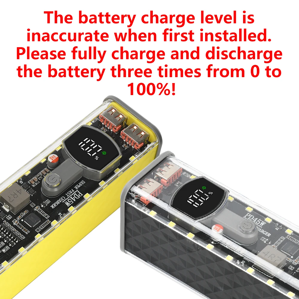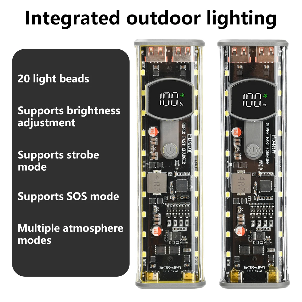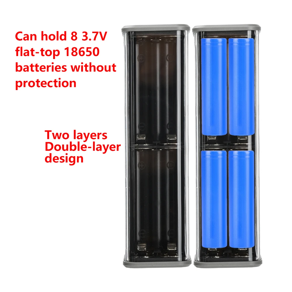PD 45W Super Fast Charging Battery Box Transparent Rechargeable Case Weldless 8pcs 18650 Battery Case With Outdoor Light