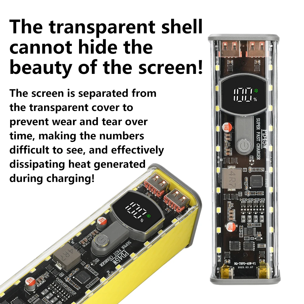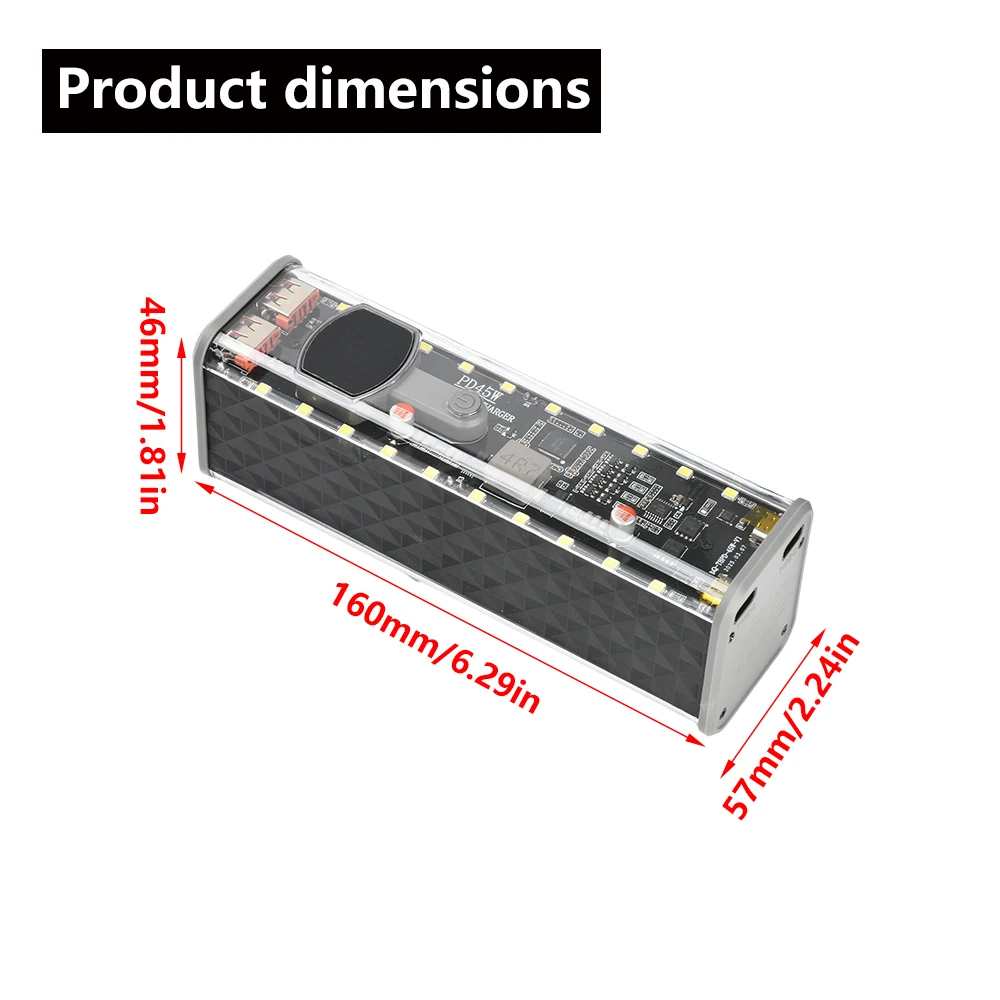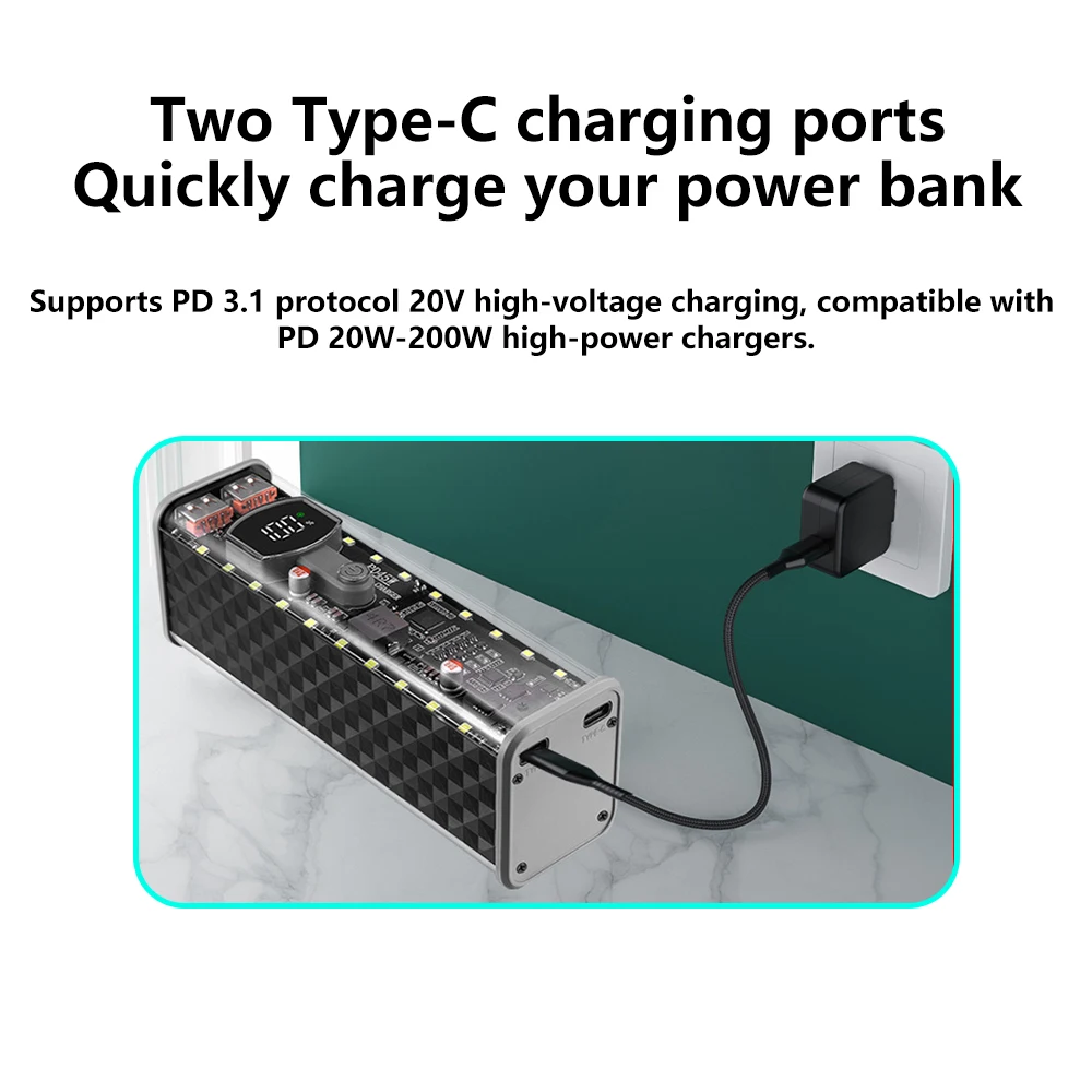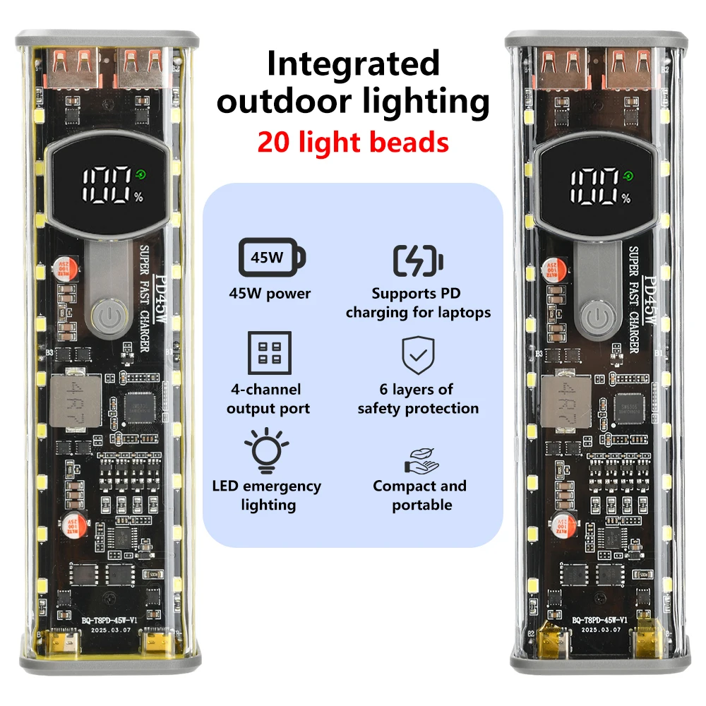 PD 45W Super Fast Charging Battery Box Transparent Rechargeable Case Weldless 8pcs 18650 Battery Case With Outdoor Light