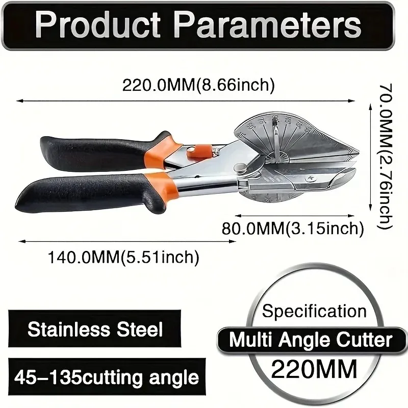1pc Multi-Angle Miter Shear Cutter - Adjustable 45°-135° for PVC/Plastic/Trim - Precision Carbon Steel Blades..