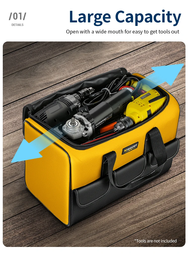 17 Inch Tool Bag, Large Tool Bag with 6 Exterior Pockets Electrician Tool Bag, for DIY Enthusiasts and Craftsmen