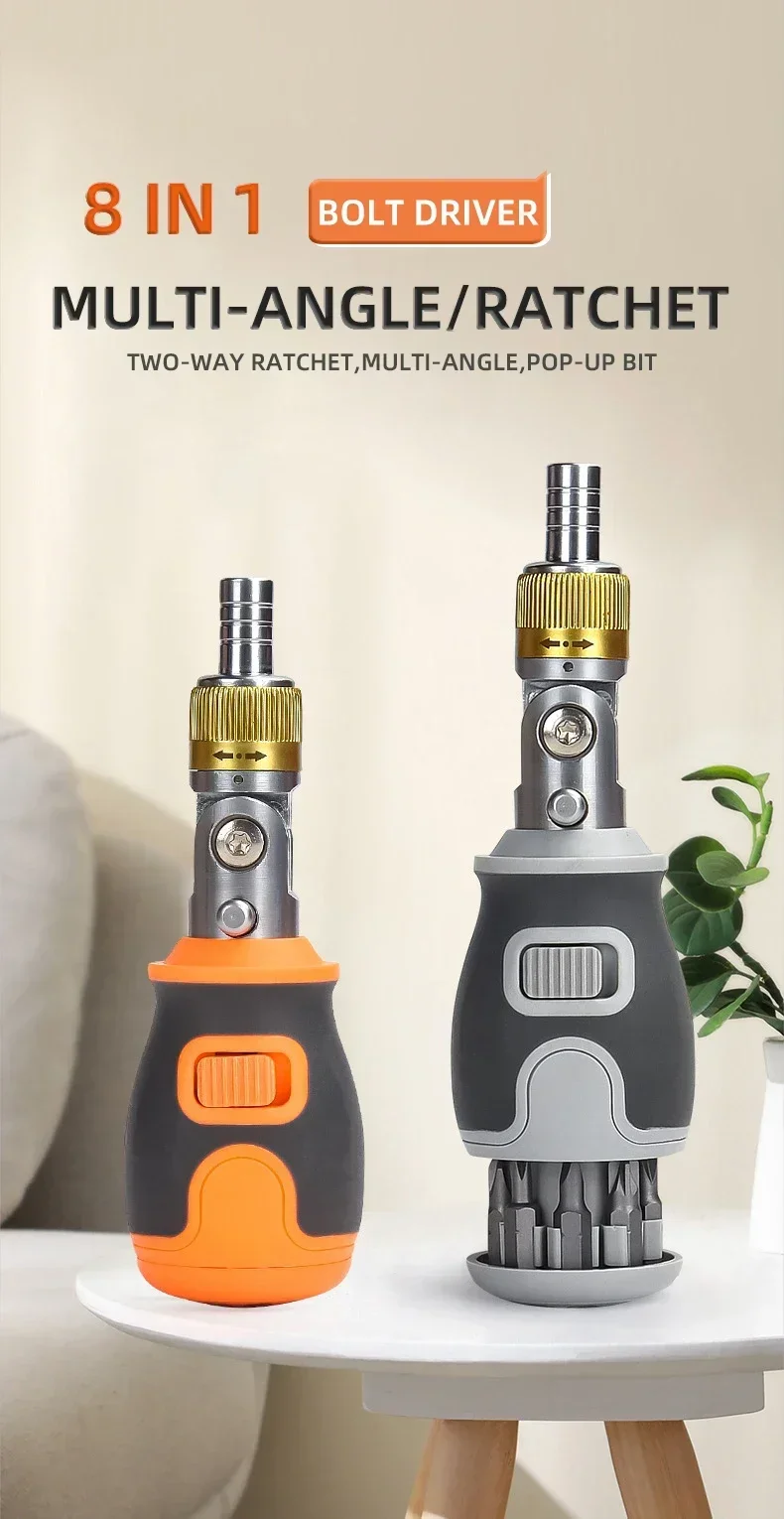 8 In 1 Mini Ratchet Screwdriver Precision Multi Tools Magnetic S2 Bits Household Multi-purpose Pocket Portable Screw Driver Set