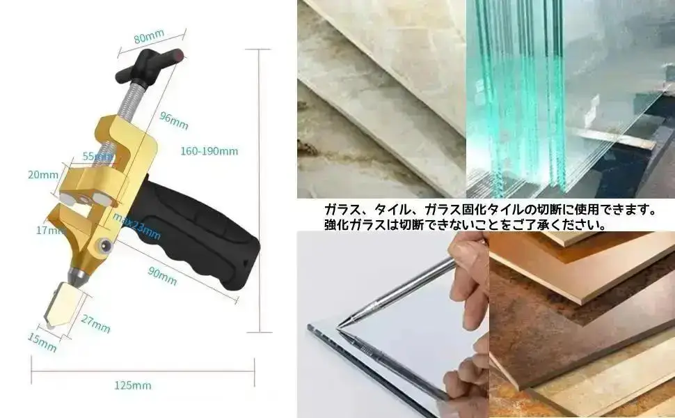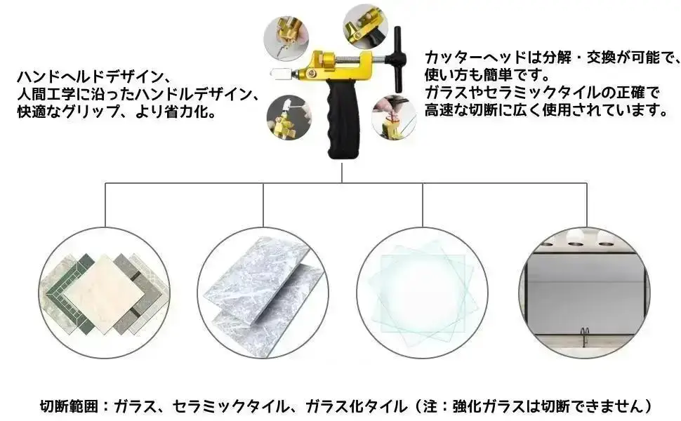 【幅広い用途】 3~15mm / 0.12~0.59インチの釉薬タイル、セラミックタイル、ガラス、鏡を簡単にカットできます。 家庭用や裁断作業に最適です。(ご注意:大理石タイル、素焼きタイル、研磨タイル、ガラス化タイル、強化ガラスなどの高密度タイルの切断には適しません。)