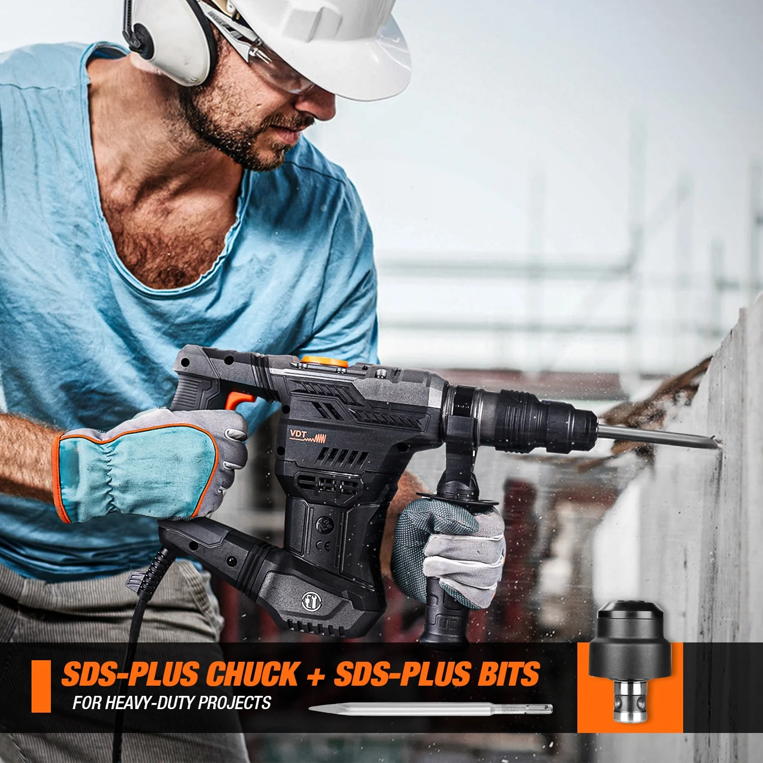 DOVAMAN 12.5 Amp 1-9/16 in SDS-Plus Rotary Hammer Drill Including Chisels and Drill Bits Corded