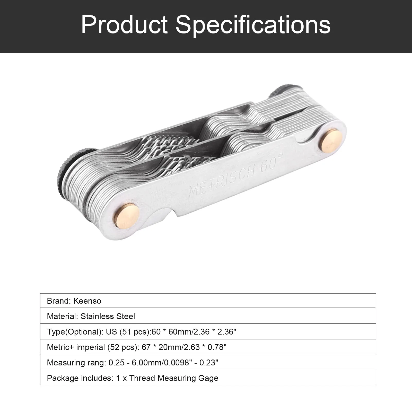 51/52Pcs Stainless Steel Thread Plug Gage 60 and 55 Degree Screw Pitch Measuring Tool: