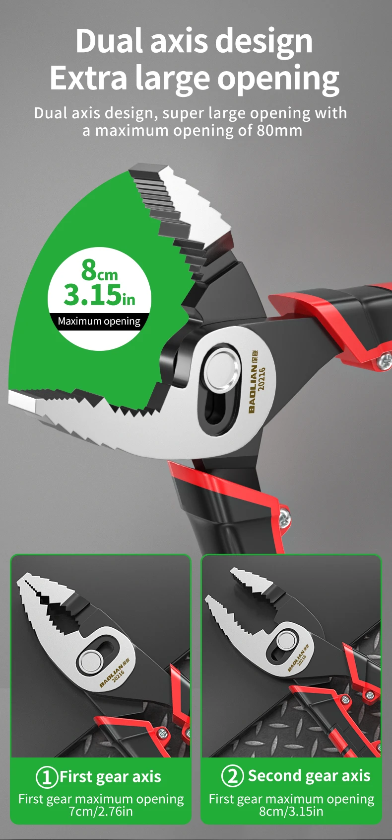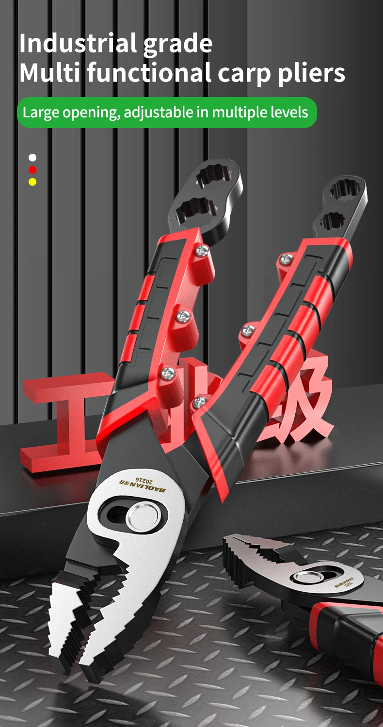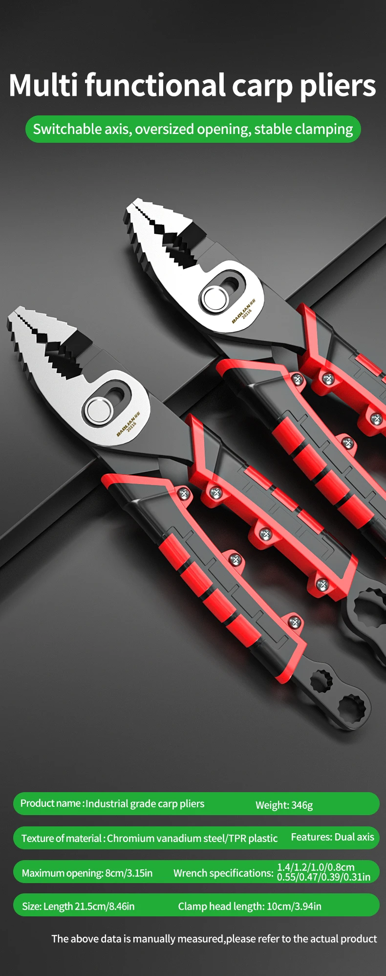 Industrial Carp Pliers 14mm - 2-in-1 Serrated Jaw & Plum Blossom Wrench, Chrome Vanadium Steel for Plumbing/Fishing