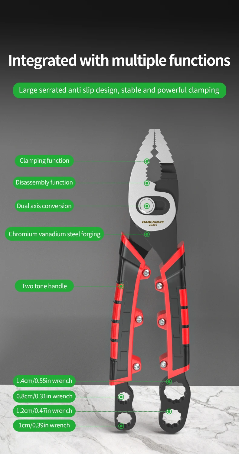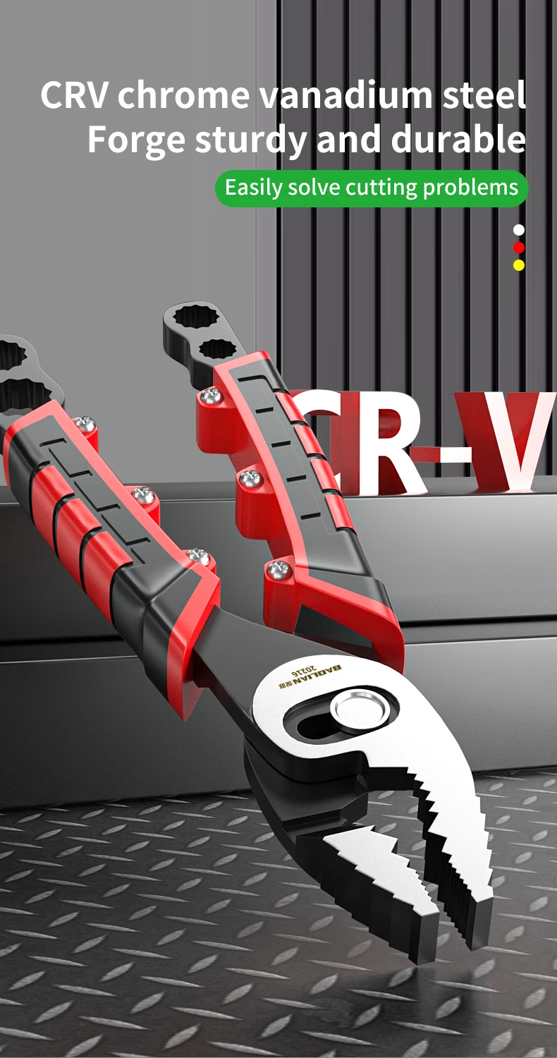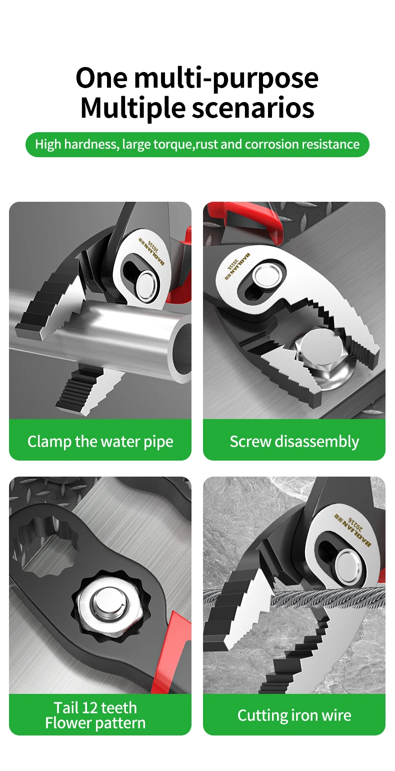 Industrial Carp Pliers 14mm - 2-in-1 Serrated Jaw & Plum Blossom Wrench, Chrome Vanadium Steel for Plumbing/Fishing