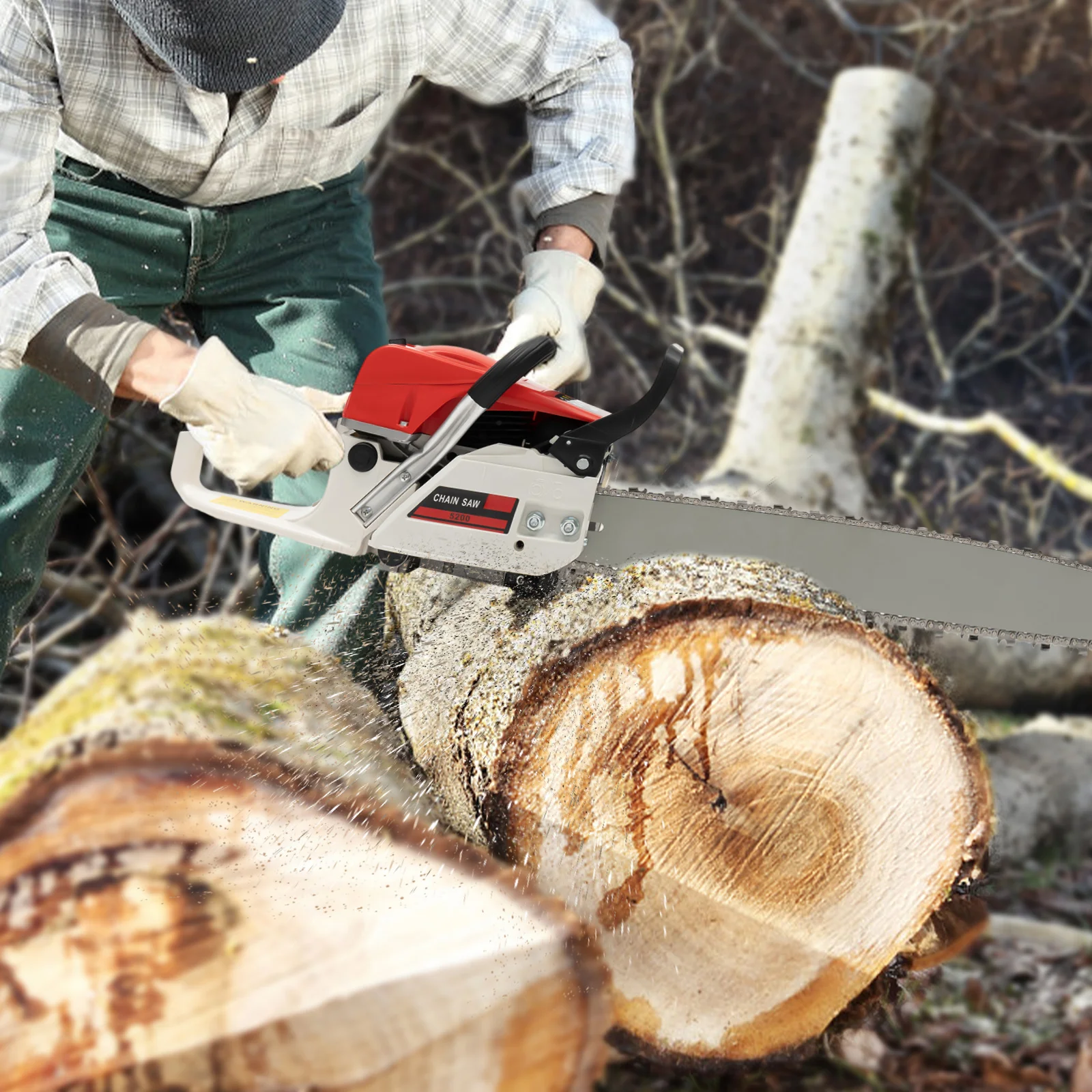 Excellent Performance: The 2-stoke engine with 52cc displacement, 7500rpm high speed, 2.0KW strong power,22" guide chain, and a deep cylinder can achieve fast cutting, thus providing excellent performance.