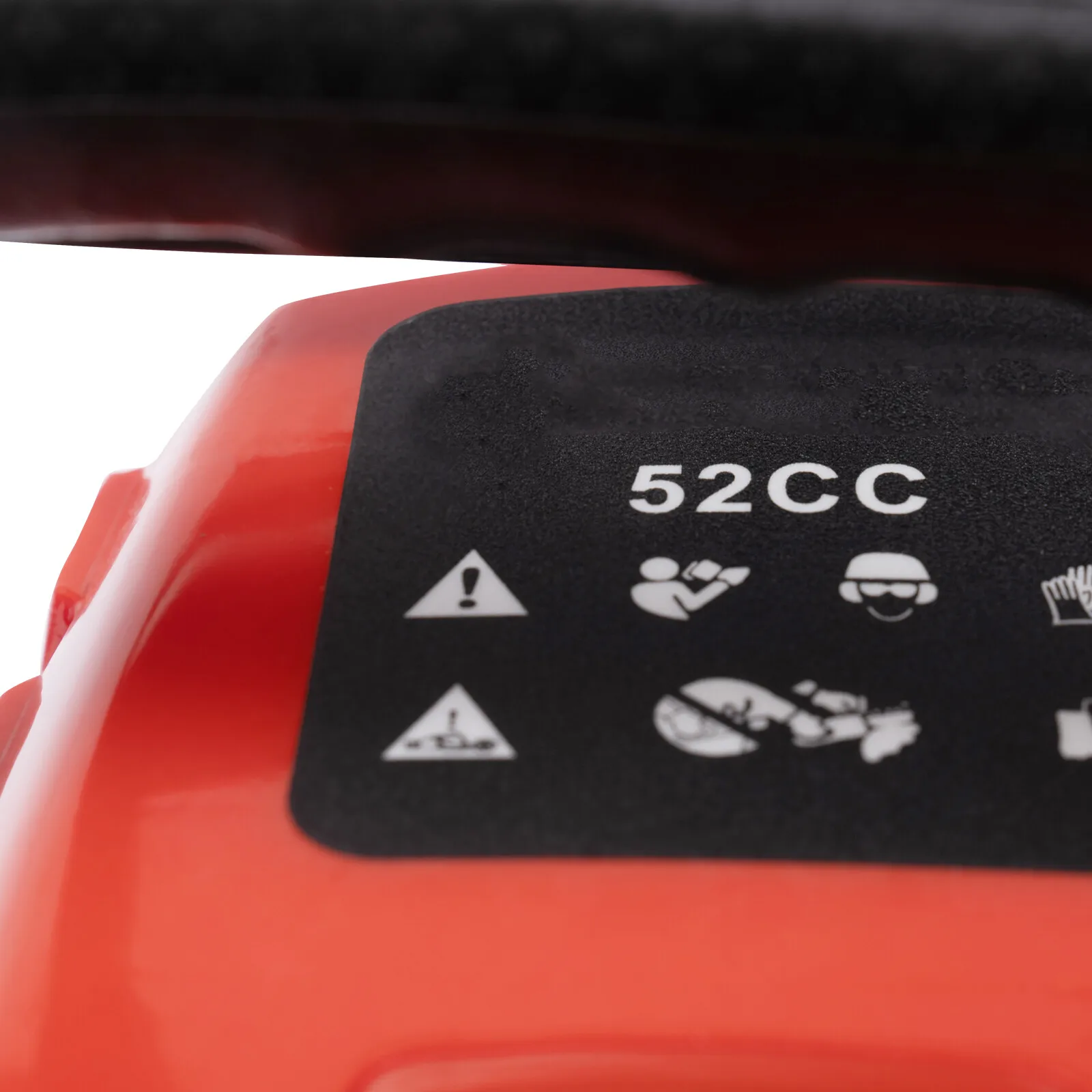 Excellent Performance: The 2-stoke engine with 52cc displacement, 10500rpm high speed, and 2.2KW high power, the high-magnetic flywheel with thickened blade design, and the carburetor with the function of atomizing fuel help this machine keep normal and economical operation, reduce emissions, achieve fast cutting, thus providing excellent performance(about 18.9" cutting diameter).