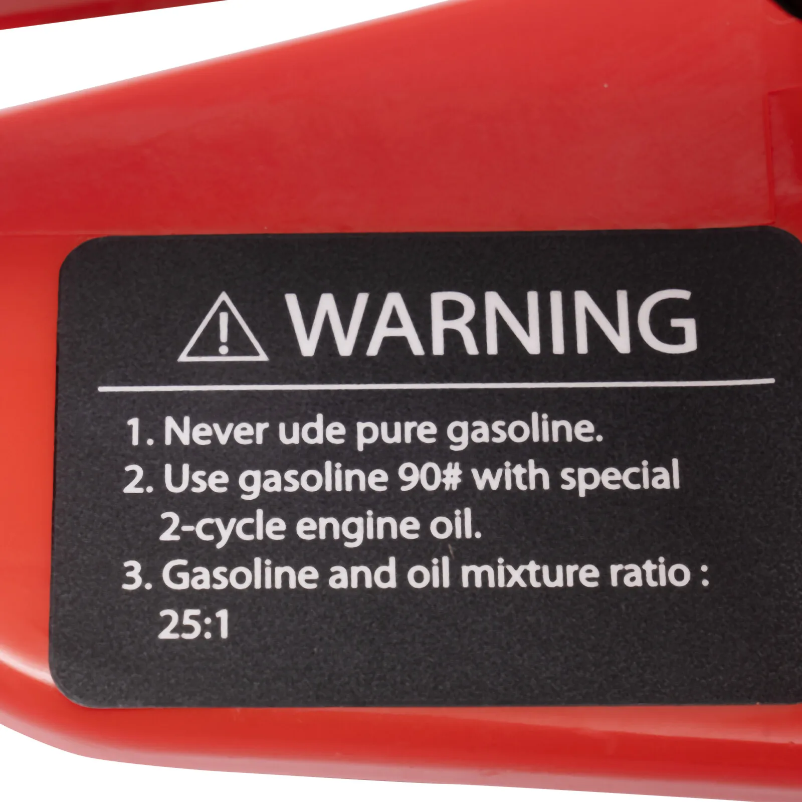 - Please use gasoline 90# with special 2-cycle engine oil and never use pure gasoline. Gasoline and oil mixture ratio: 25:1.