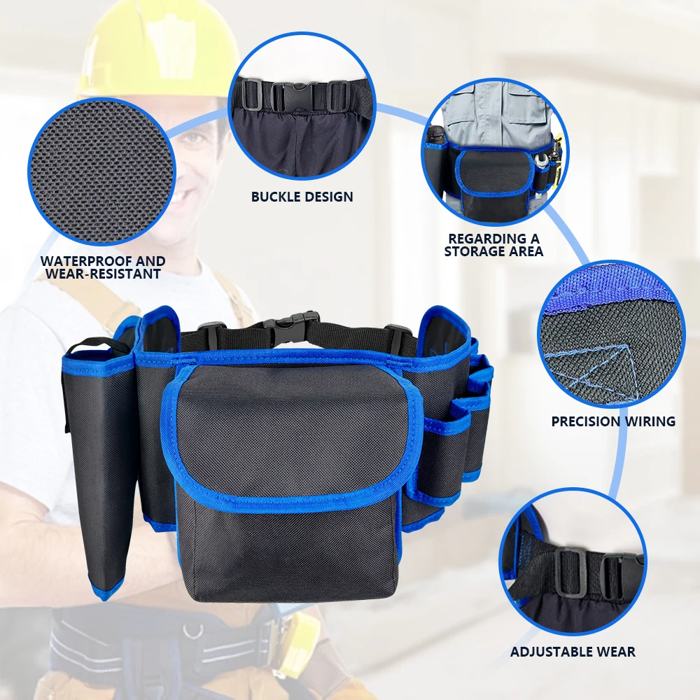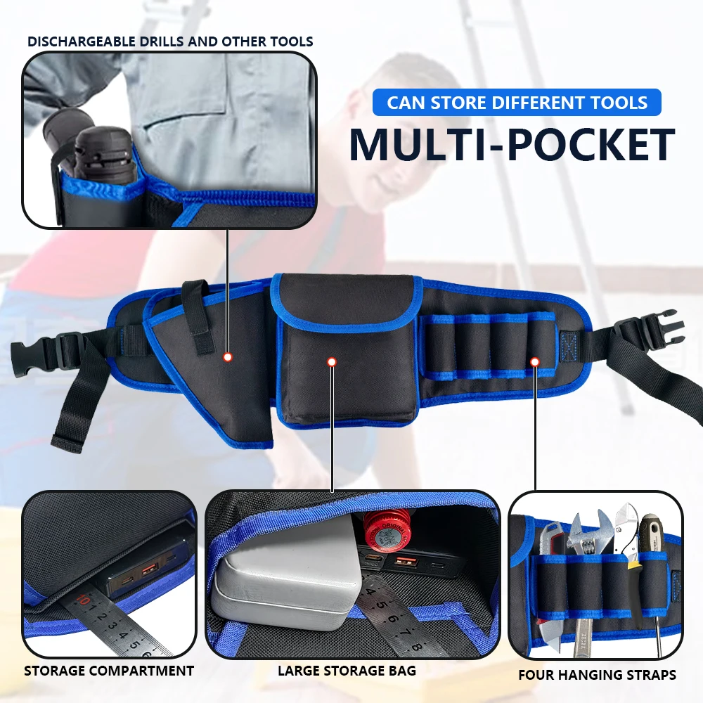 Tool Belt with electric drill bag for Electricians Construction Workers, Adjustable Heavy Duty Work Belt, Polyester Tool Belt