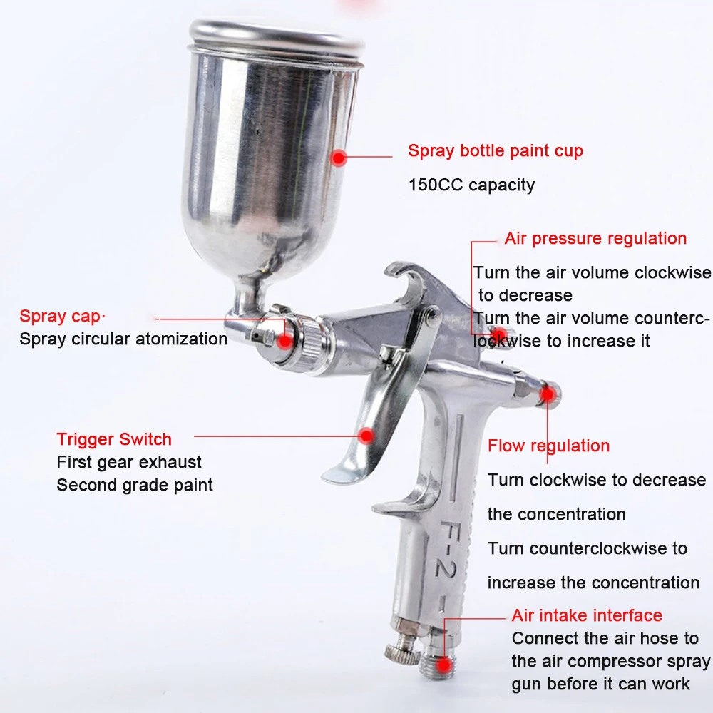 F-2 Pneumatic Spray Gun High Atomization Spray Gun, Pneumatic Spray Gun for Oil Wall Painting Coating on Automotive Leather Robe