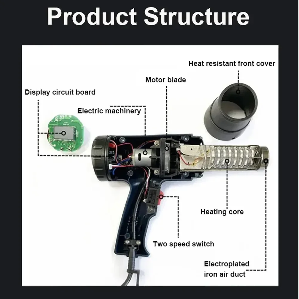 Discover the ultimate versatile heat gun, an essential tool for every household and professional workshop. Designed with an ergonomic handle, this high-performance hot air gun reduces strain during extended use, ensuring comfort and safety in every application. Whether you're a DIY enthusiast or a professional craftsman, this device provides the power and precision needed for a wide range of tasks.