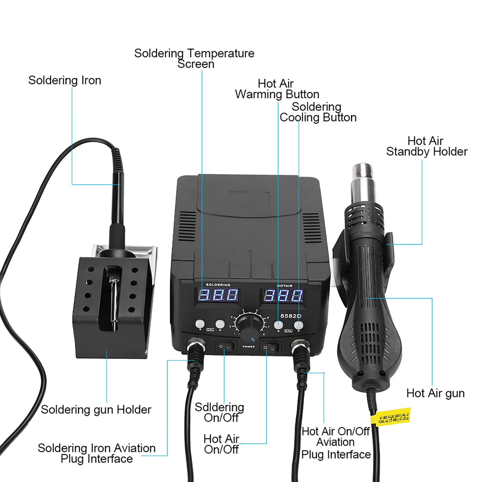 2 In1 Soldering Station Soldering Station Soldering Iron Rework Station 2 In1 SMD LED Digital Display for Hot Air Gun 8582D 750W