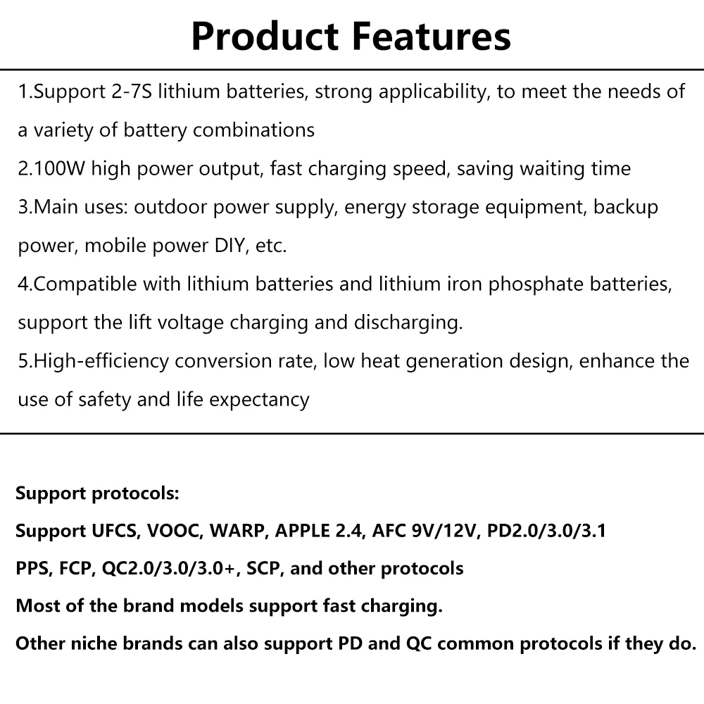 1.Support 2-7S lithium batteries, strong applicability, to meet the needs of a variety of battery combinations