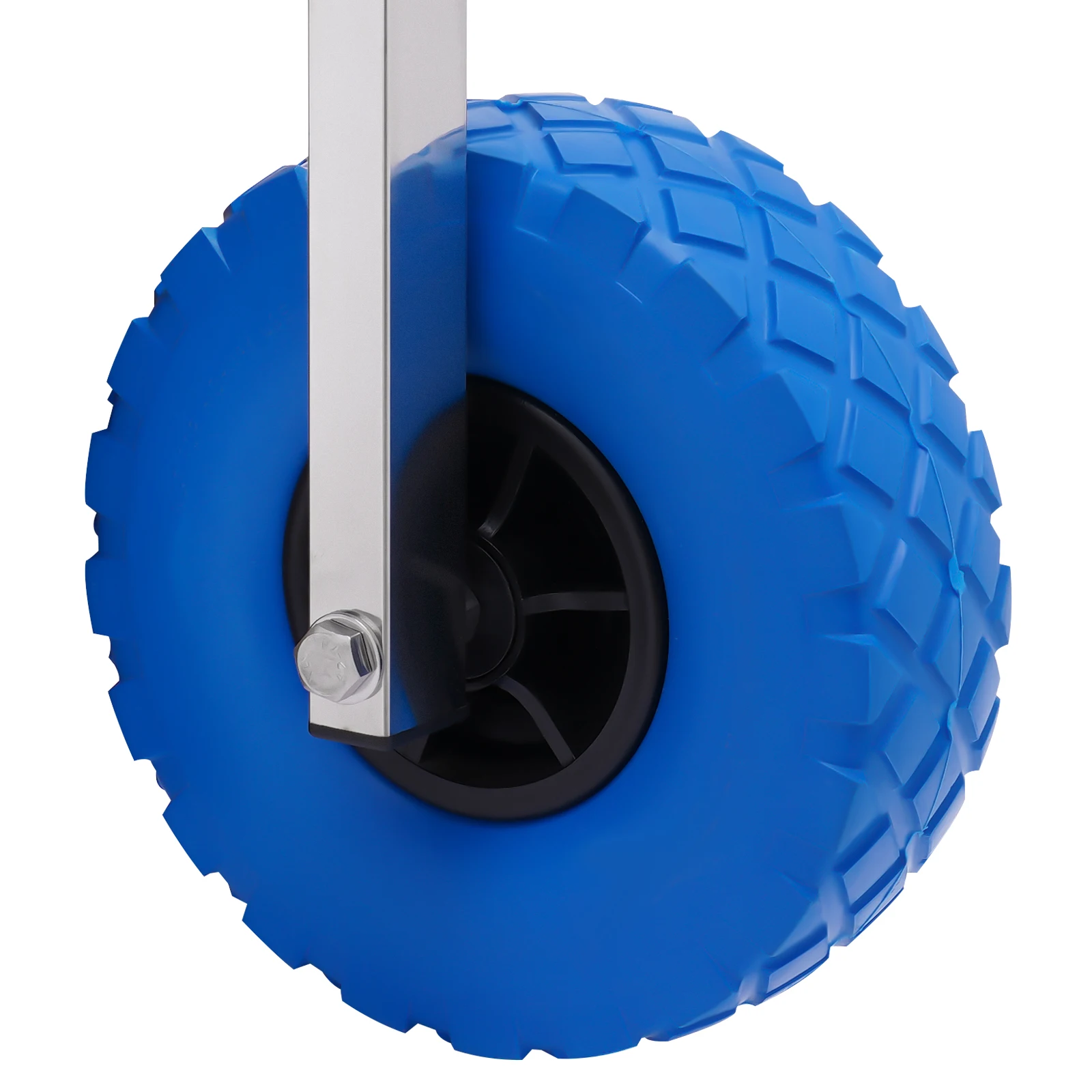 This inflatable boat trailer wheel is made of high-quality plastic foaming wheels as well as stainless steel frames, so it has an excellent weight-bearing capacity. It can hold up to 330.7 pounds, so you can use it boldly. The 9.84-inch tires allow it to move smoothly over rough surfaces (such as sand and gravel) and tree-lined areas. This inflatable boat trailer wheel is universal and not limited, so it can be used for all kinds of inflatable boats and trailers, etc.