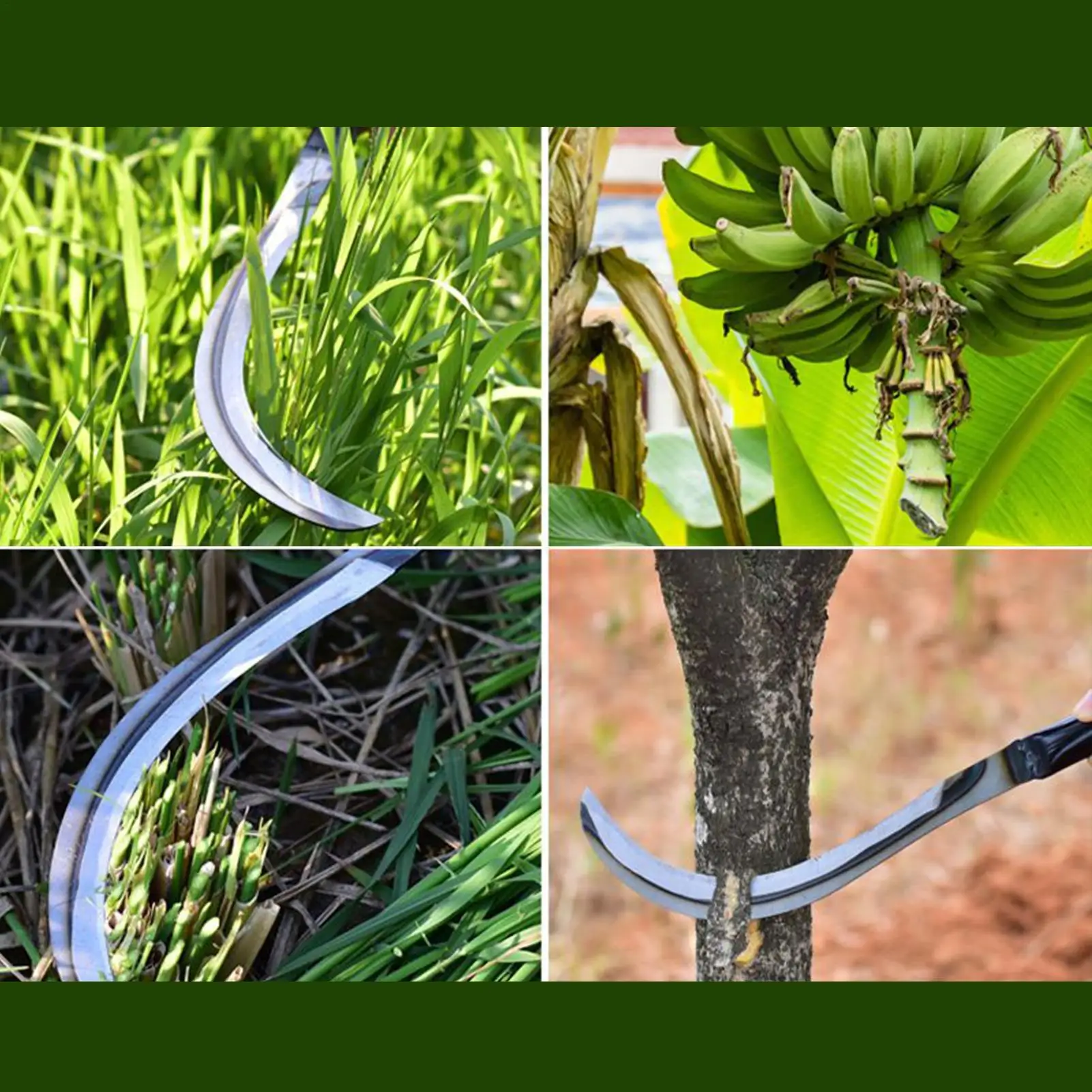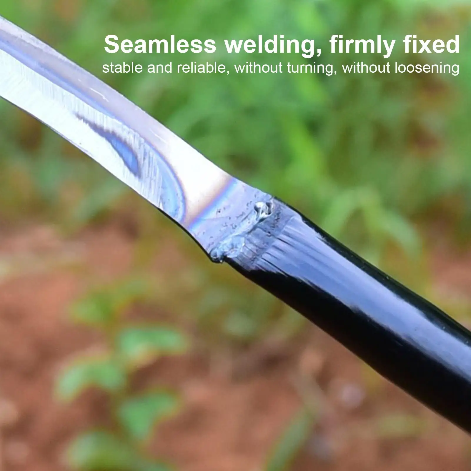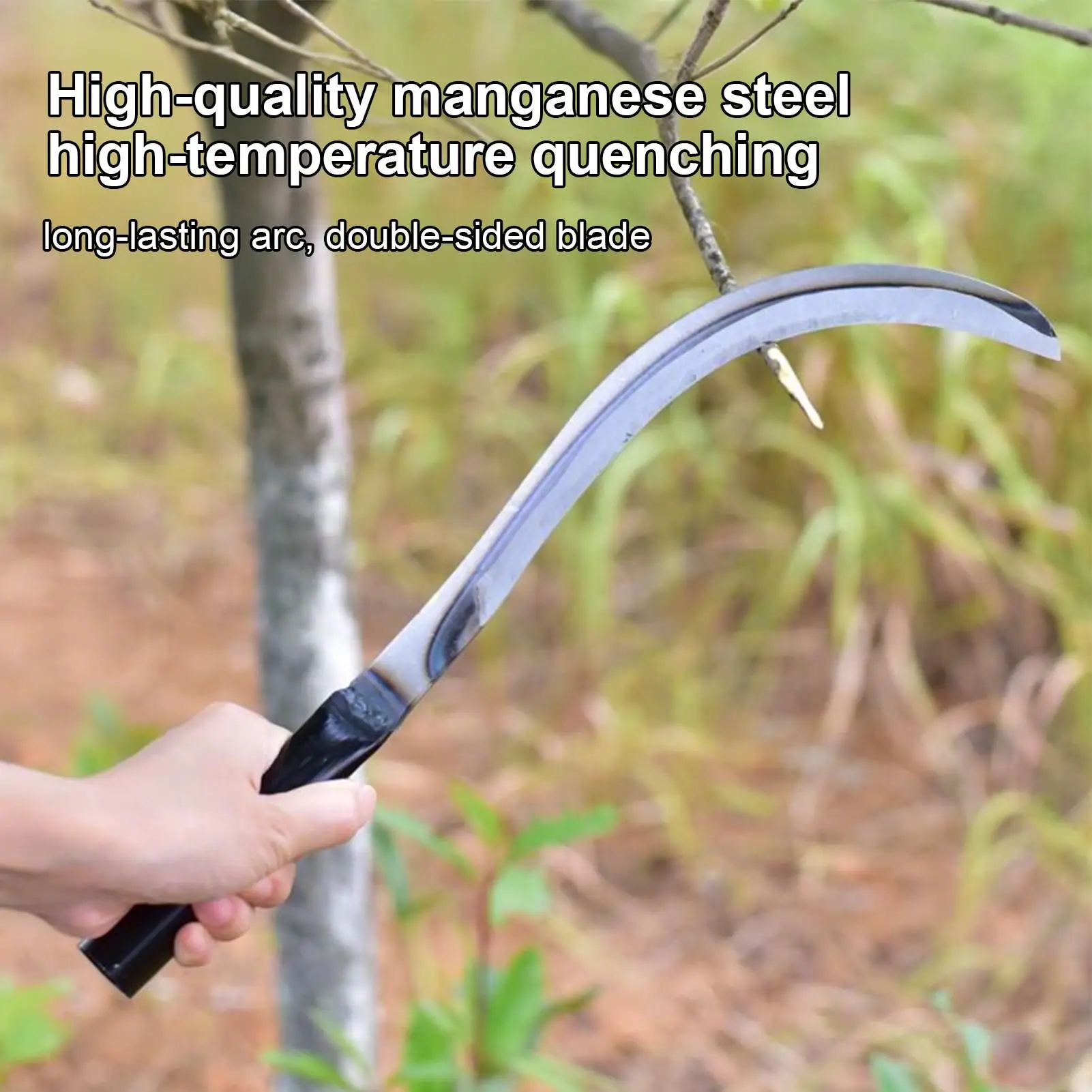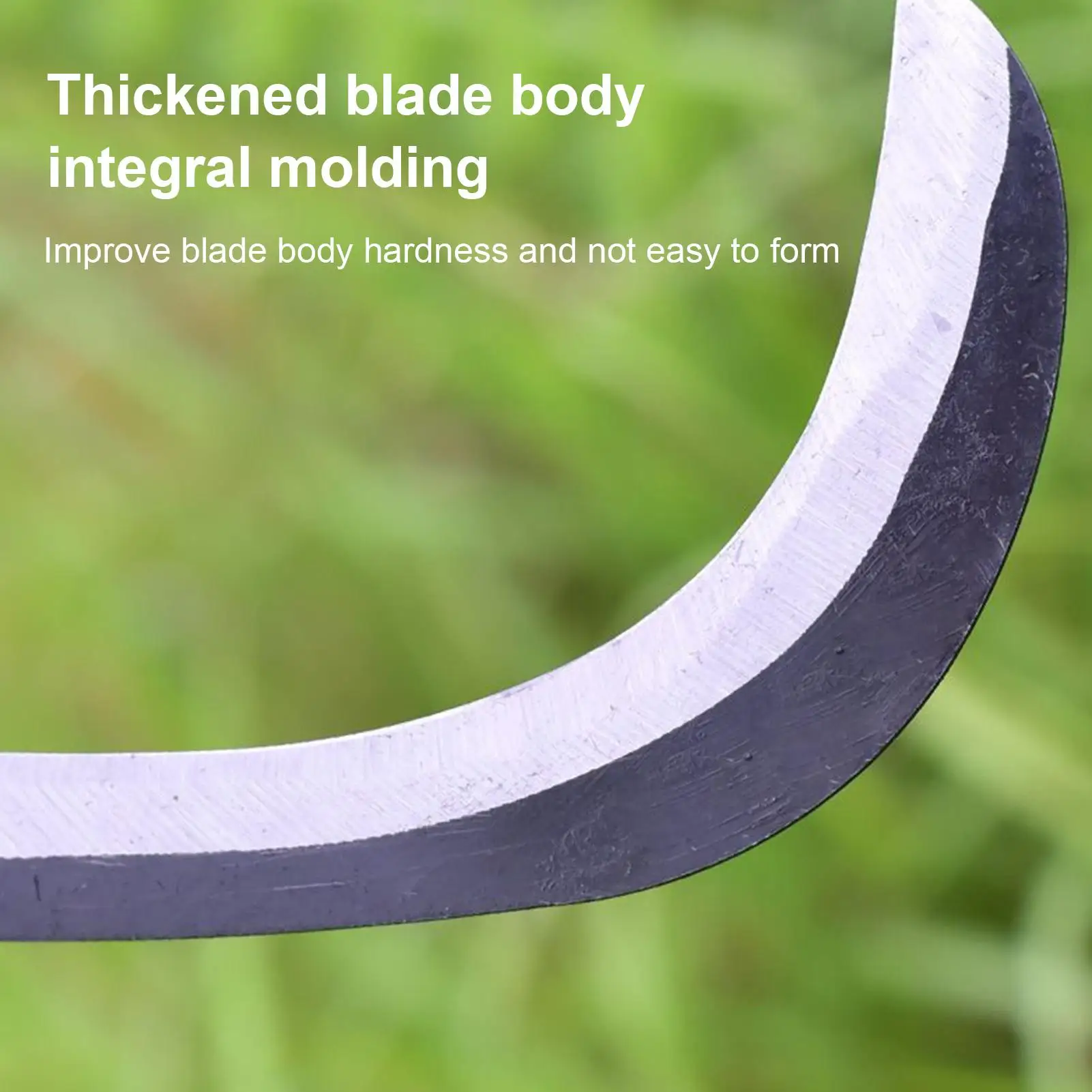 3.Good Workmanship: Designed with wear-resistant manganese steel, the sickle undergoes high-temperature hardening to ensures it retains its cutting efficiency and structural integrity for repeated gardening use
