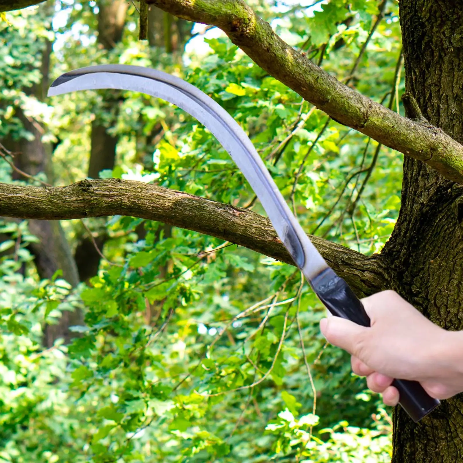 Crafted for efficiency in gardening and farming, this weeding sickle serves as a reliable cutter for heavy-duty tasks while remaining lightweight for ease of use in yards, fields, jungles, or plantations, ensuring durability and comfort during outdoor activities in wilderness areas, trails, or bushy terrains.