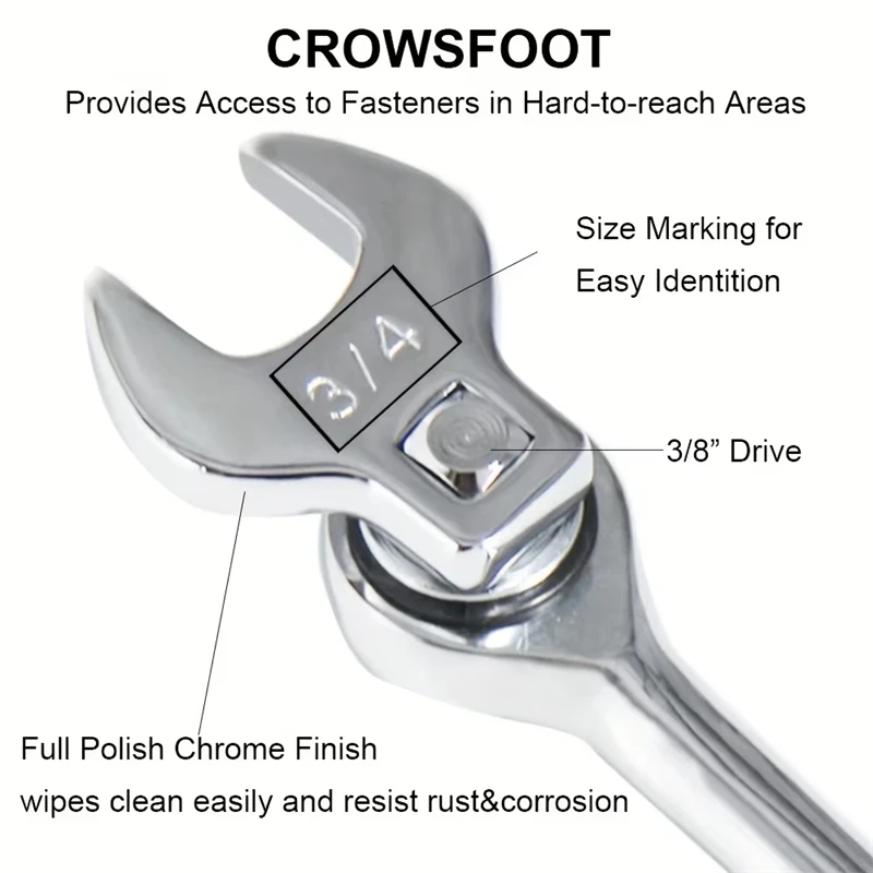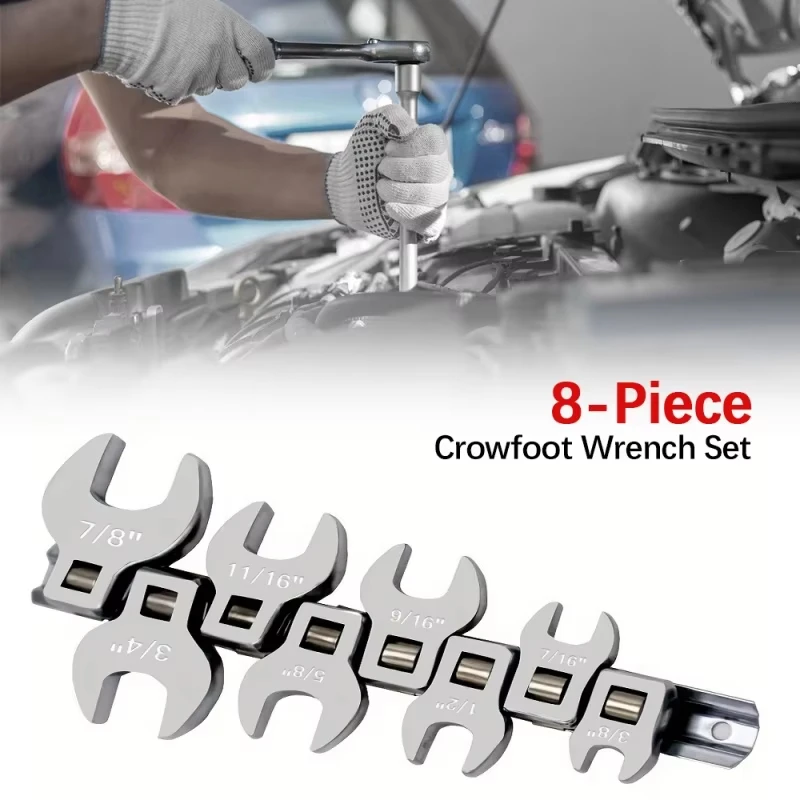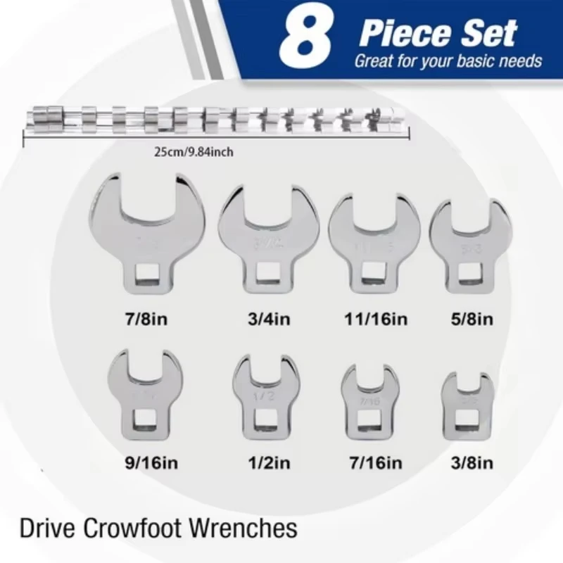 8pcs 3/8'' Interchangeable Crowfoot Wrench Head Imperial Quick Opening Spanner Combination Tool Kits For Ratchet Torque Wrench