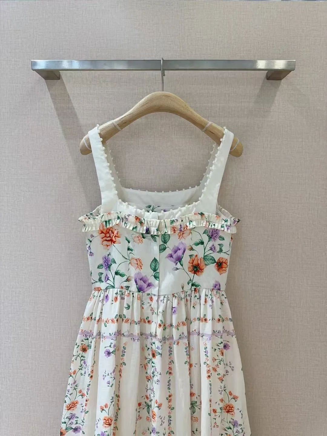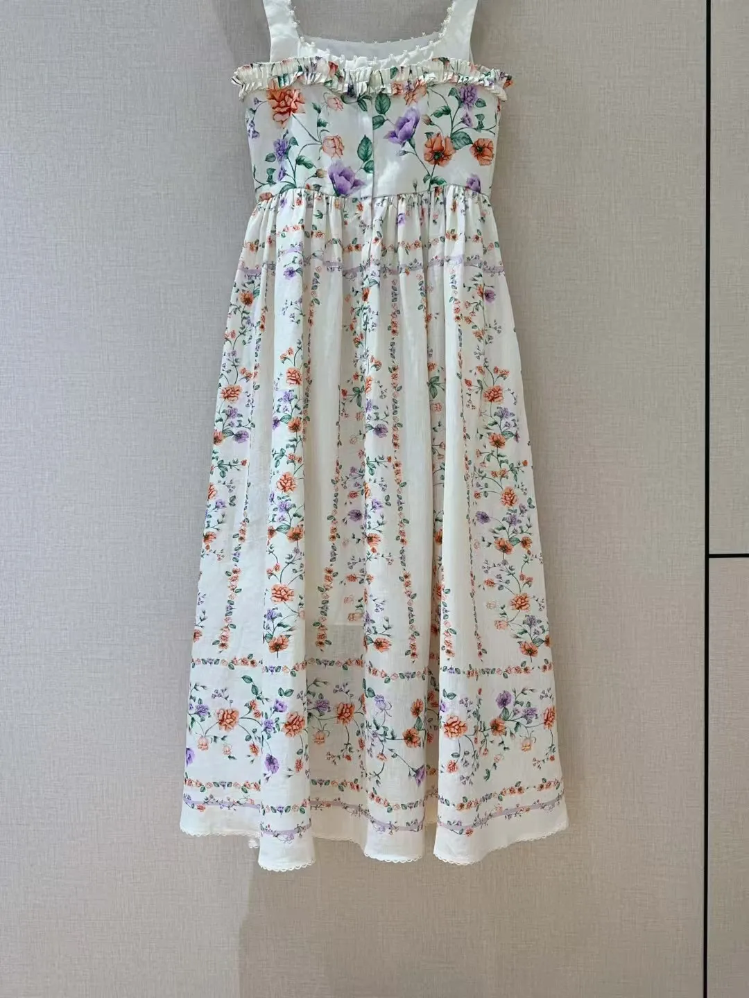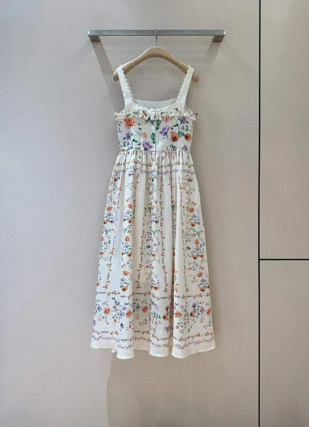 Retro camisole dress ???????? Suya wild floral print pattern, linen texture+pearl suspender trim, pleated black fungus edge on the chest, pleated splicing at the mid to high waist hem, very slim and oversized skirt with dreamy elegance and retro fashion