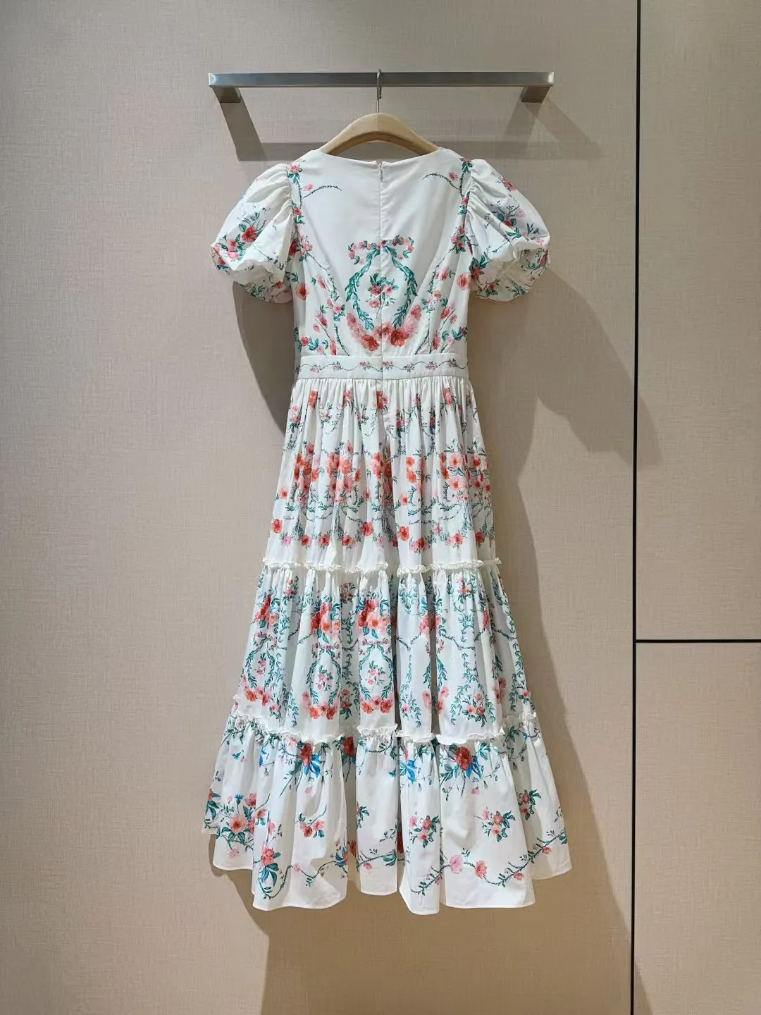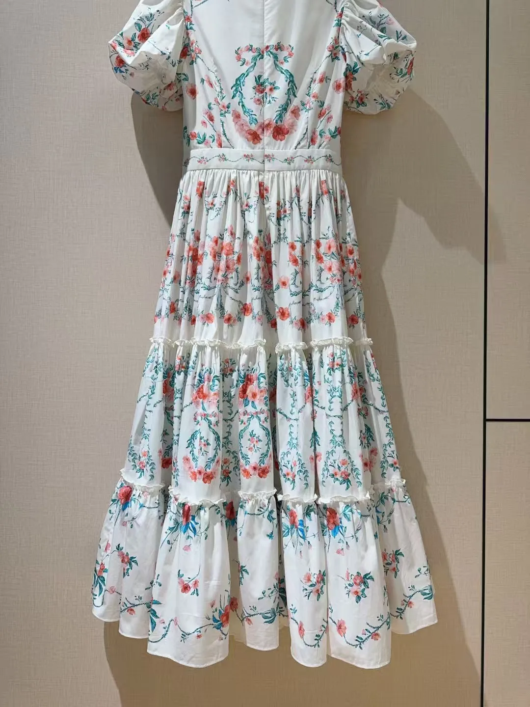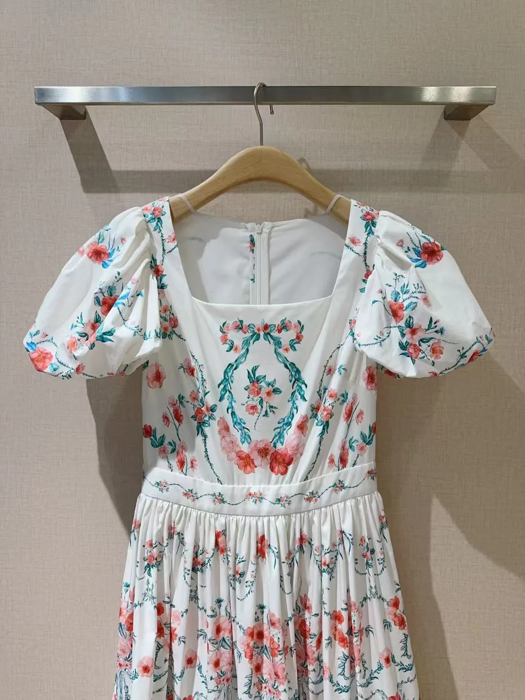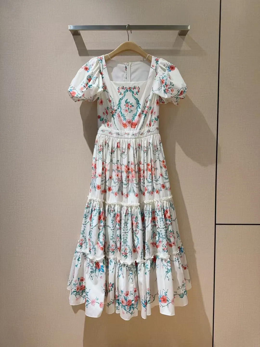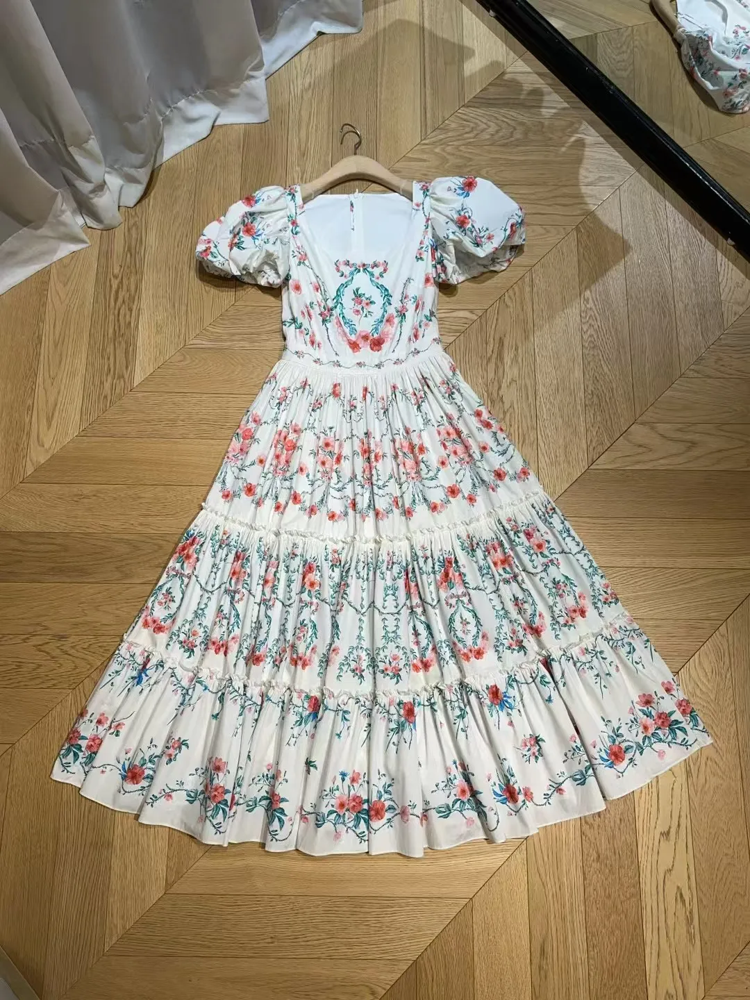 Retro style square neck dress ???????? Small floral print pattern, pure cotton texture+princess bubble sleeves, mid to high waist hem with folded edges, very slimming, oversized skirt with dreamy elegance and retro fashion combination