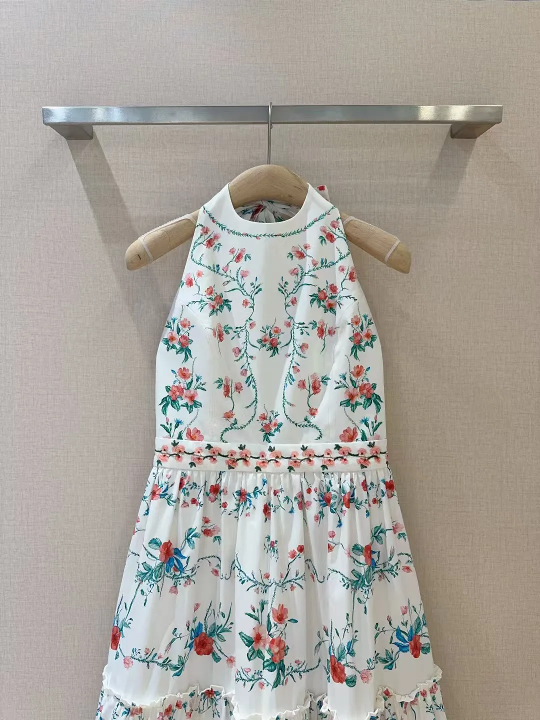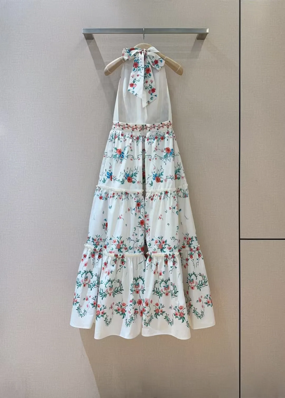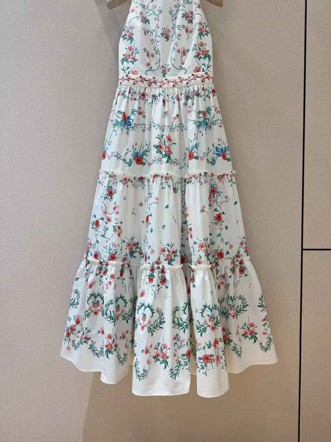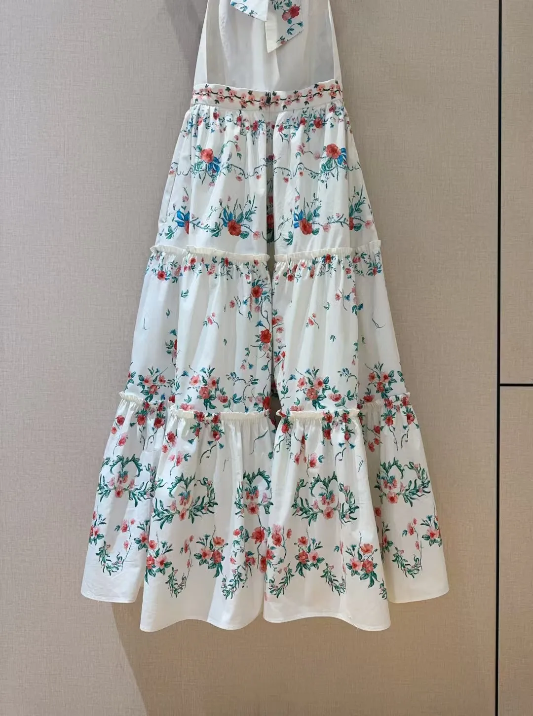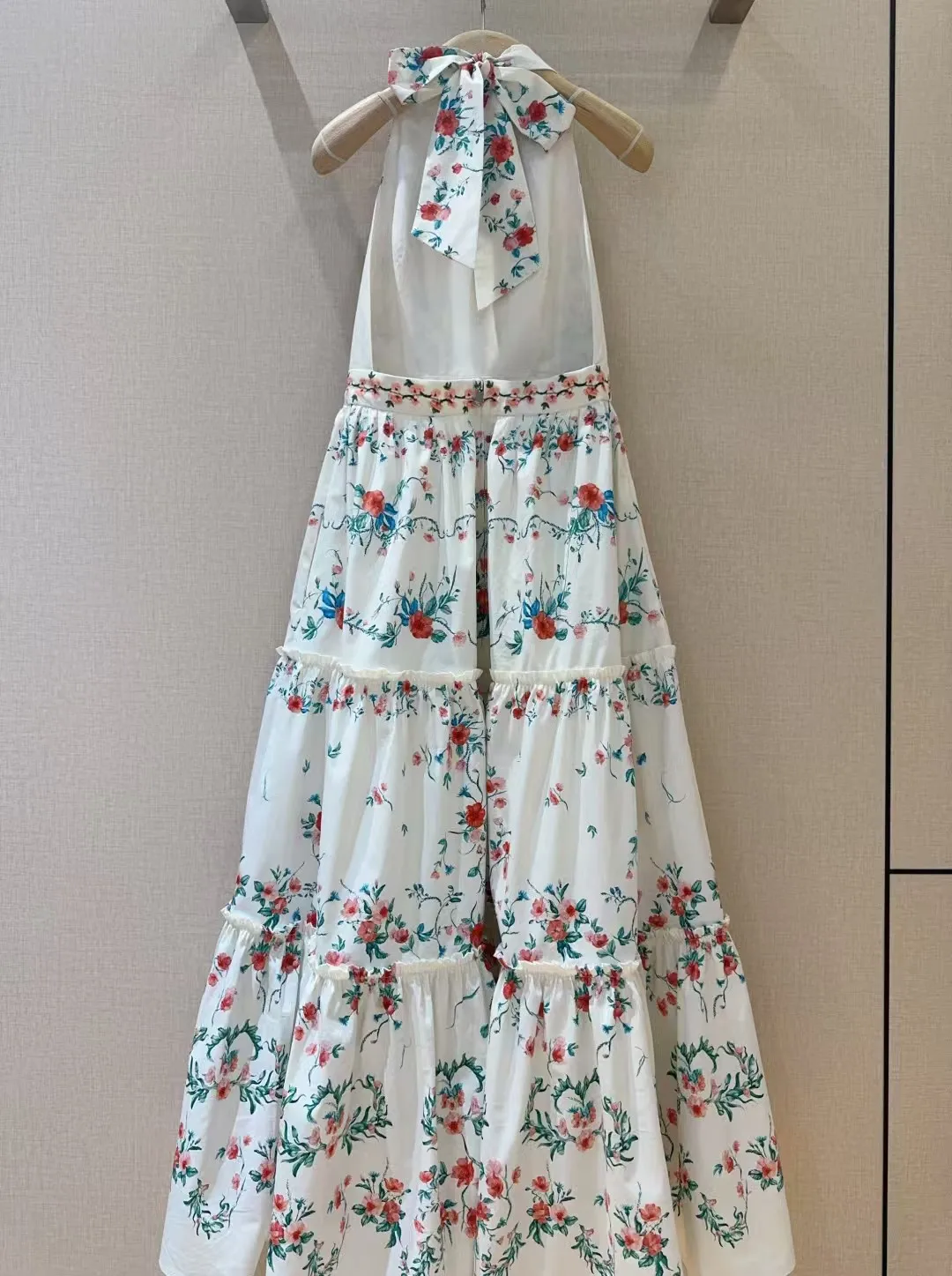 Small floral print pattern, pure cotton texture+sleeveless hanging neck backless design, mid to high waist hem with folded edges, very slimming, oversized skirt with dreamy elegance and retro fashion