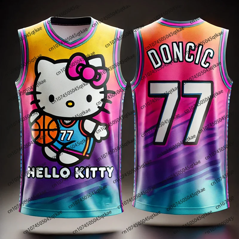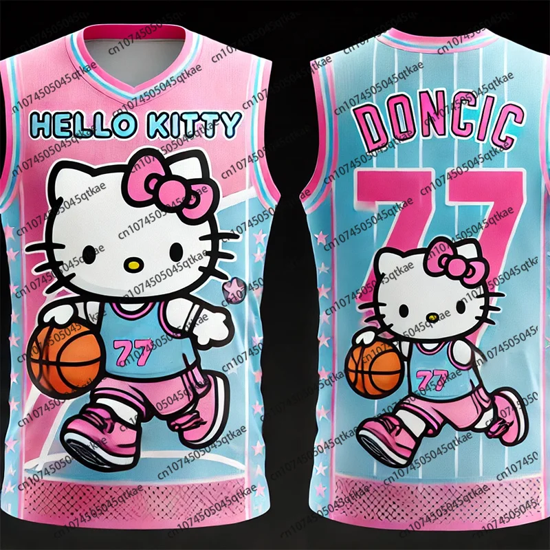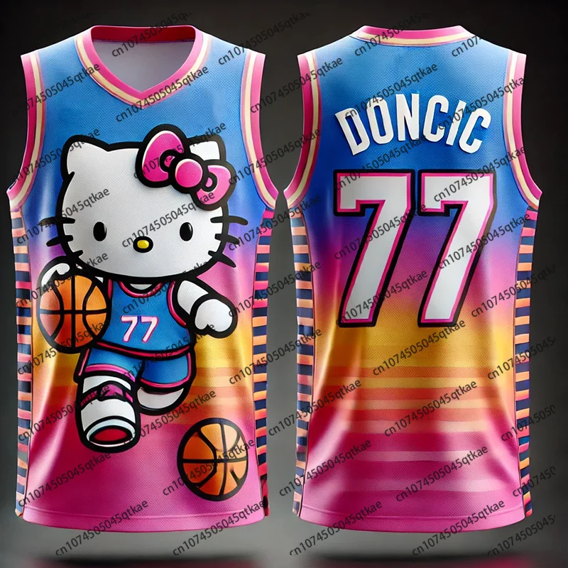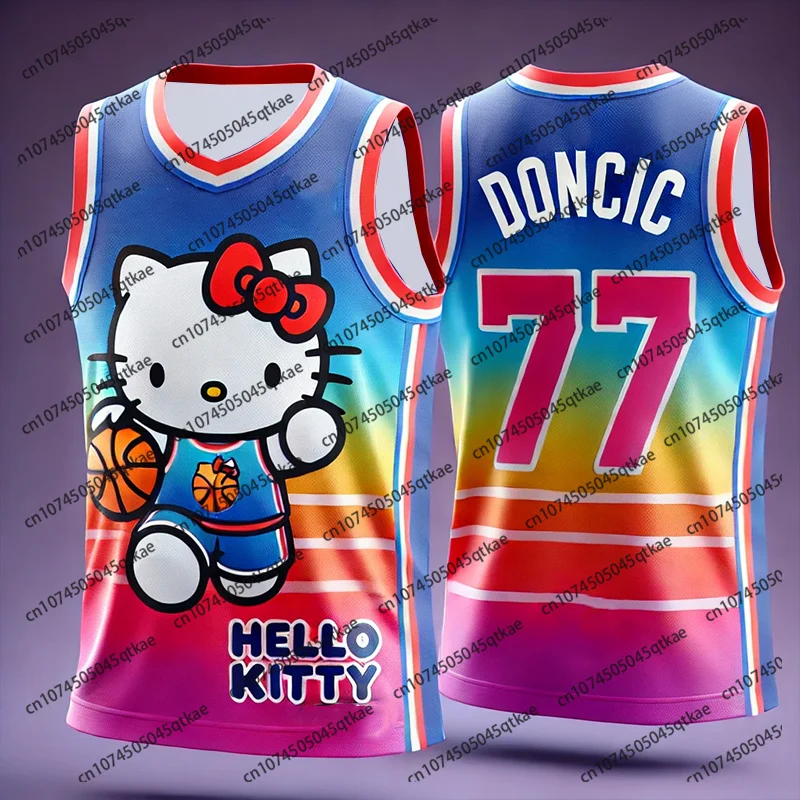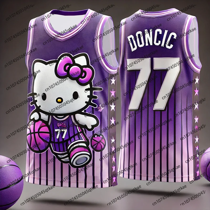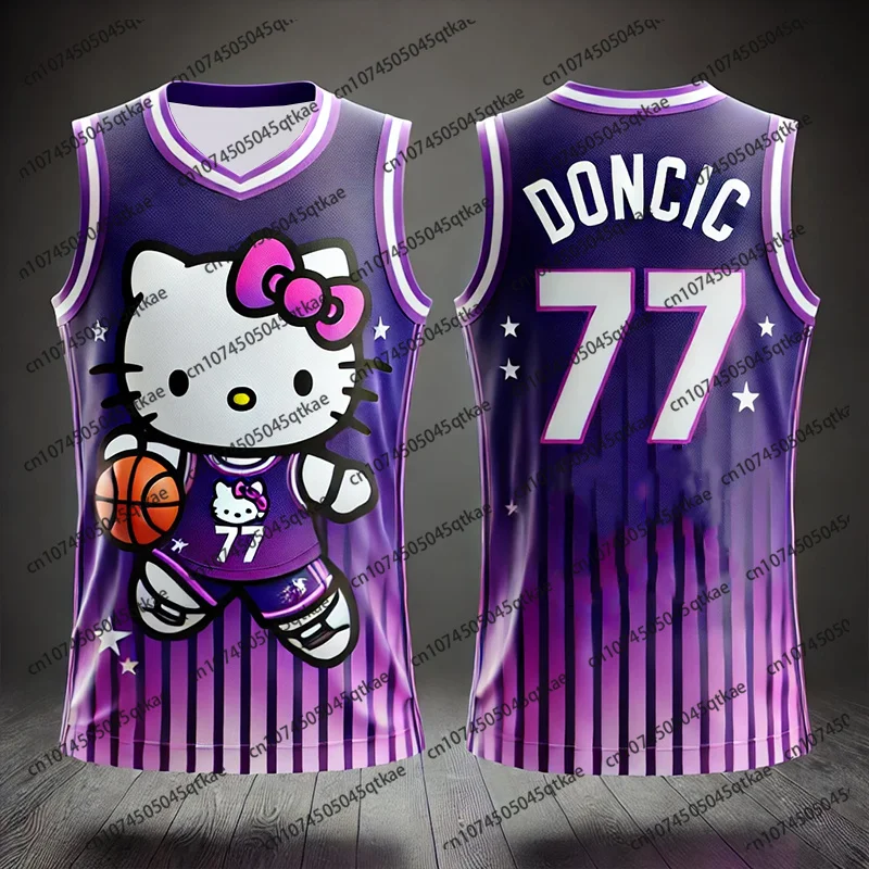 2025 Special edition Hello Kitty Basketball Jersey Doncic No77 Breathable Quick Drying Sleeveless Tee Unisex Training Sport Vest