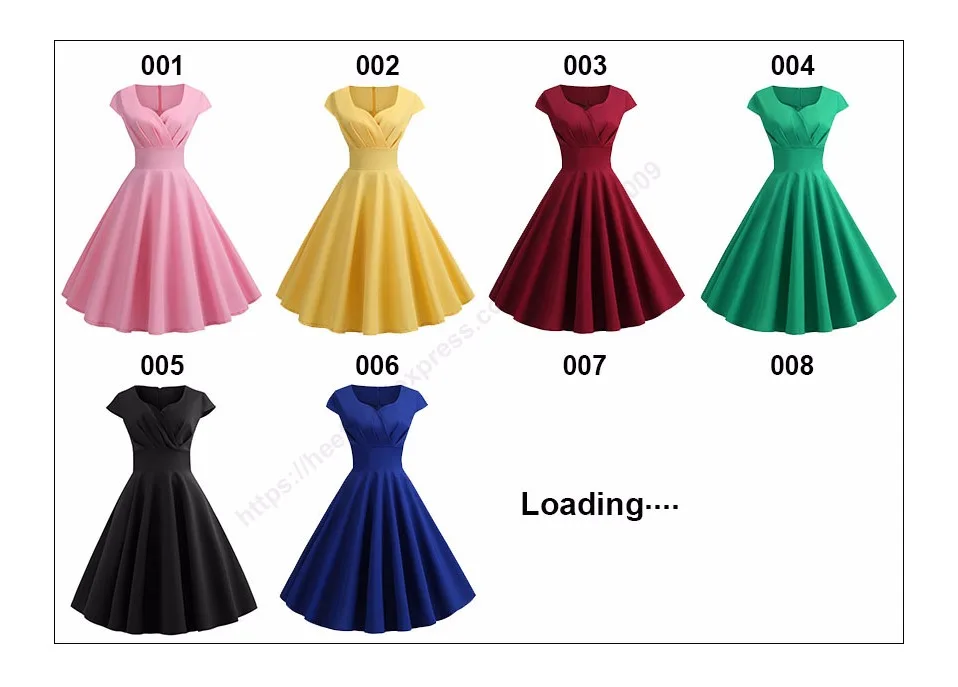 Women Summer Dress Solid Color Retro Vintage 50s 60s Casual Party Office Robe Rockabilly Dresses Vestidos