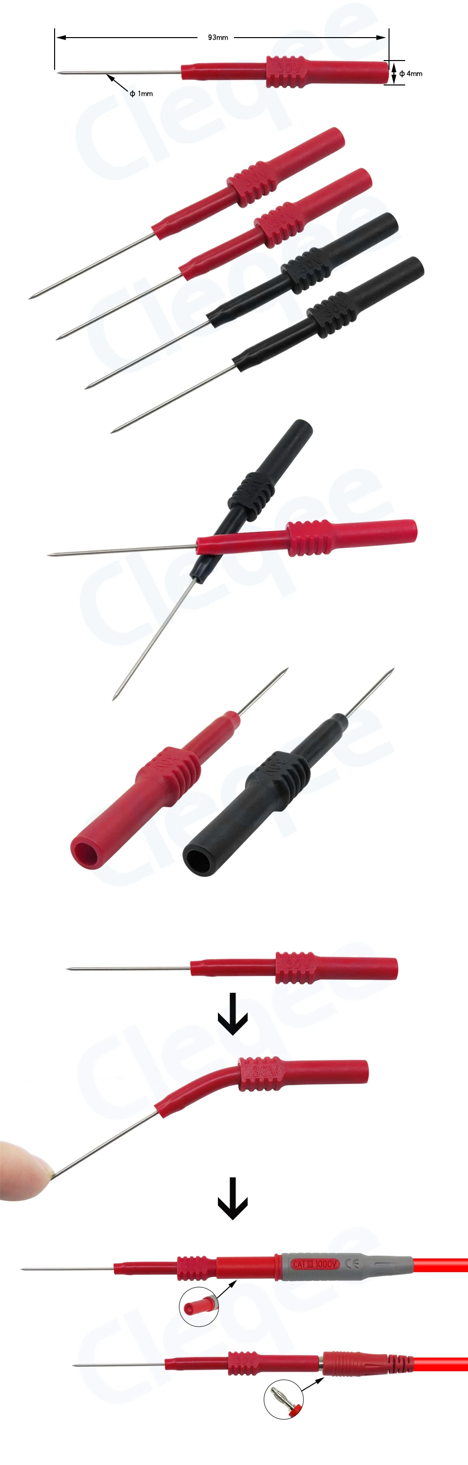 Material: Stainless Steel Needles, Soft PVC, PASurface Treatment: Nickel Plating Current Voltage: 30V /Max.1A Connection mode: Assembly Product color: Red black grey.