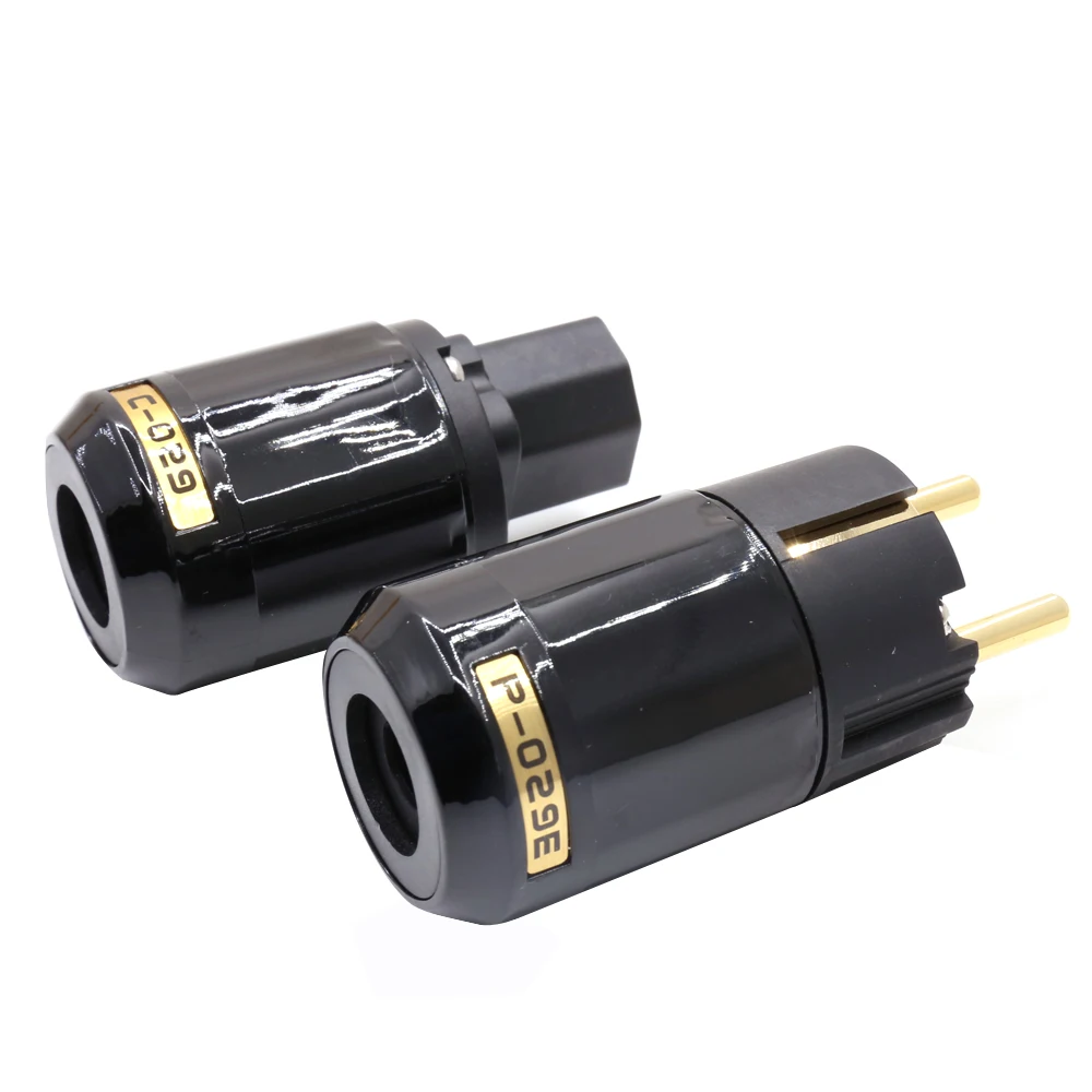 P029E+C029 Schuko power plug Hifi Power Plug High Quality Gold plated One Pair Eu Power Connector + IEC female connector