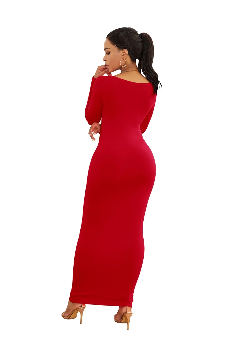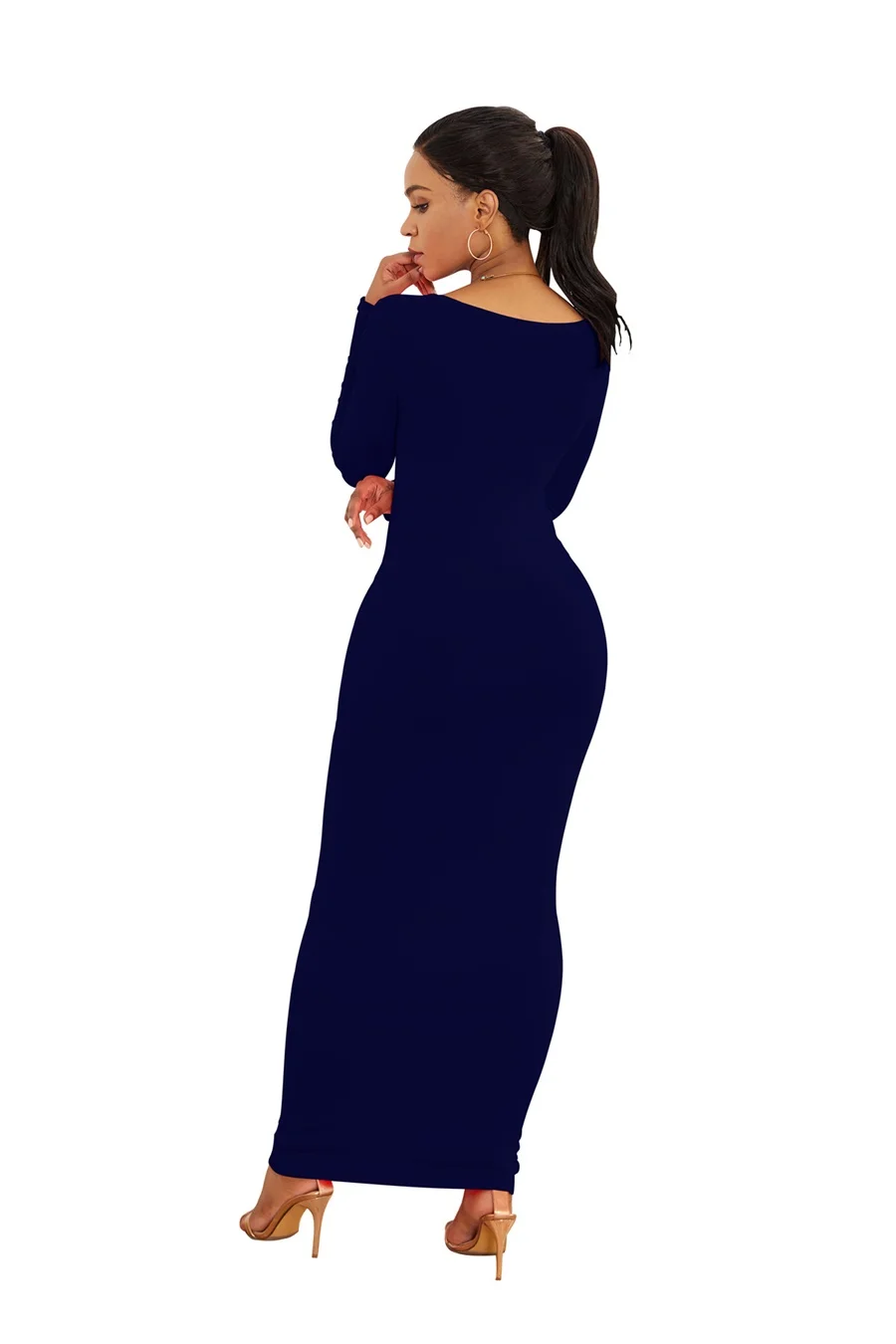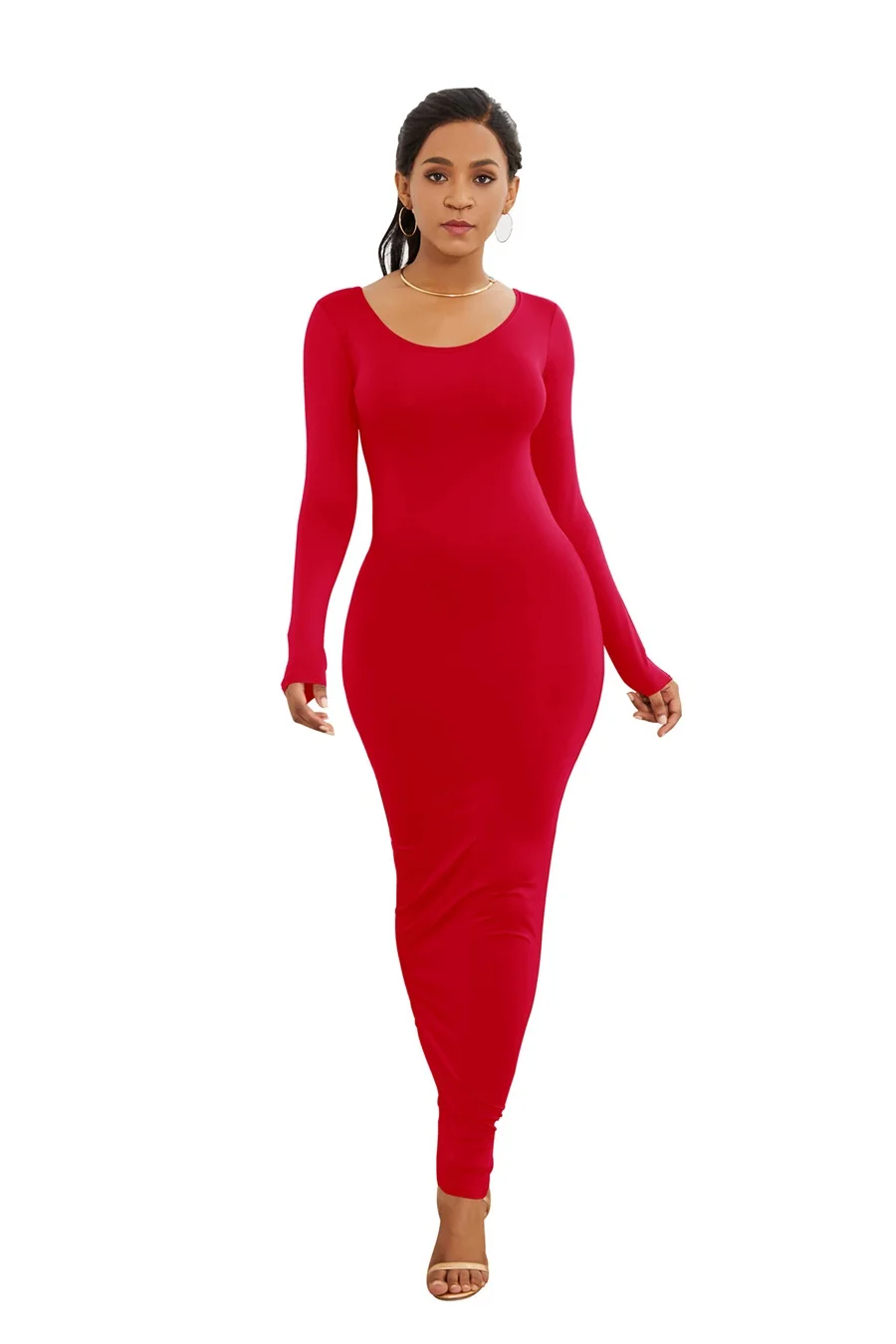 Long Dress Women Sexy Maxi Party Dress Casual Long Sleeve Solid Bodycon Dress High Stretch Slim Vestidos