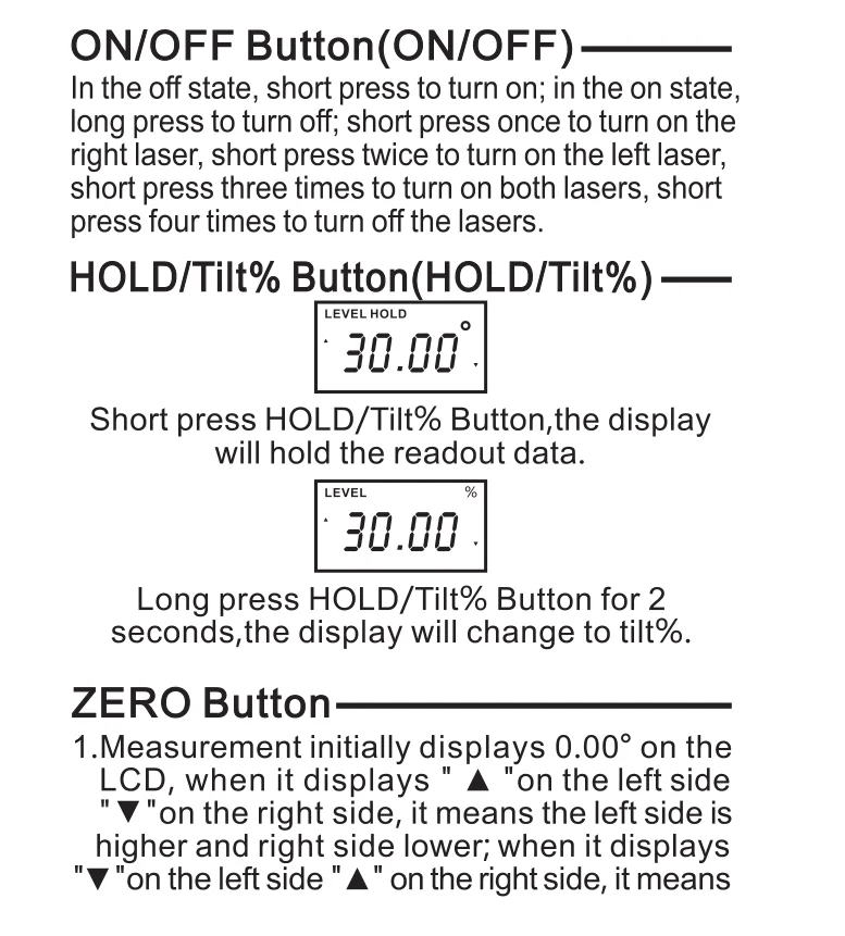 4.The display will be turn off if you don't operate the device within 30 seconds ,the dispaly will automatic turn off if you don't operate it within 3 minutes